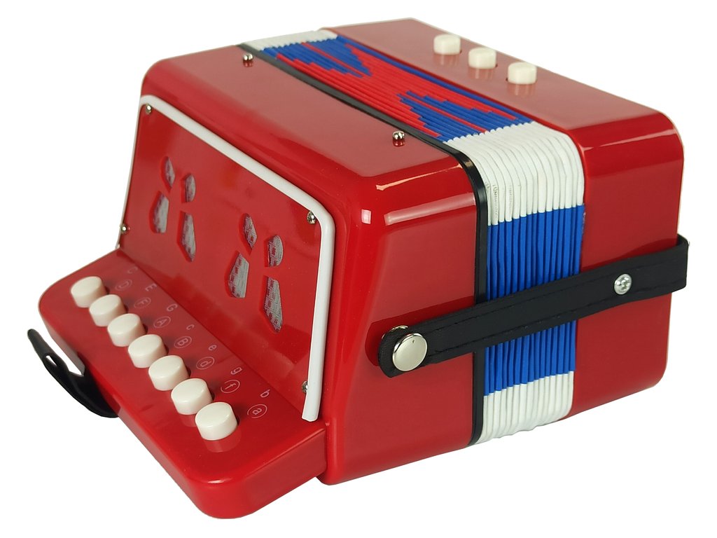 Музикалният акордеон е фантастична играчка за деца, които обичат музиката и забавленията. Инструментът изглежда като истински акордеон. Той отлично развива моторните умения и слуха на детето, като същевременно го подготвя за свирене на реален музикален инструмент. Принципът на работа е същият като при истинския акордеон – за да издаде звук, трябва да разтягате и приближавате меховете. Акордеонът разполага с басови и мелодични бутони, както и дръжка за удобен захват.