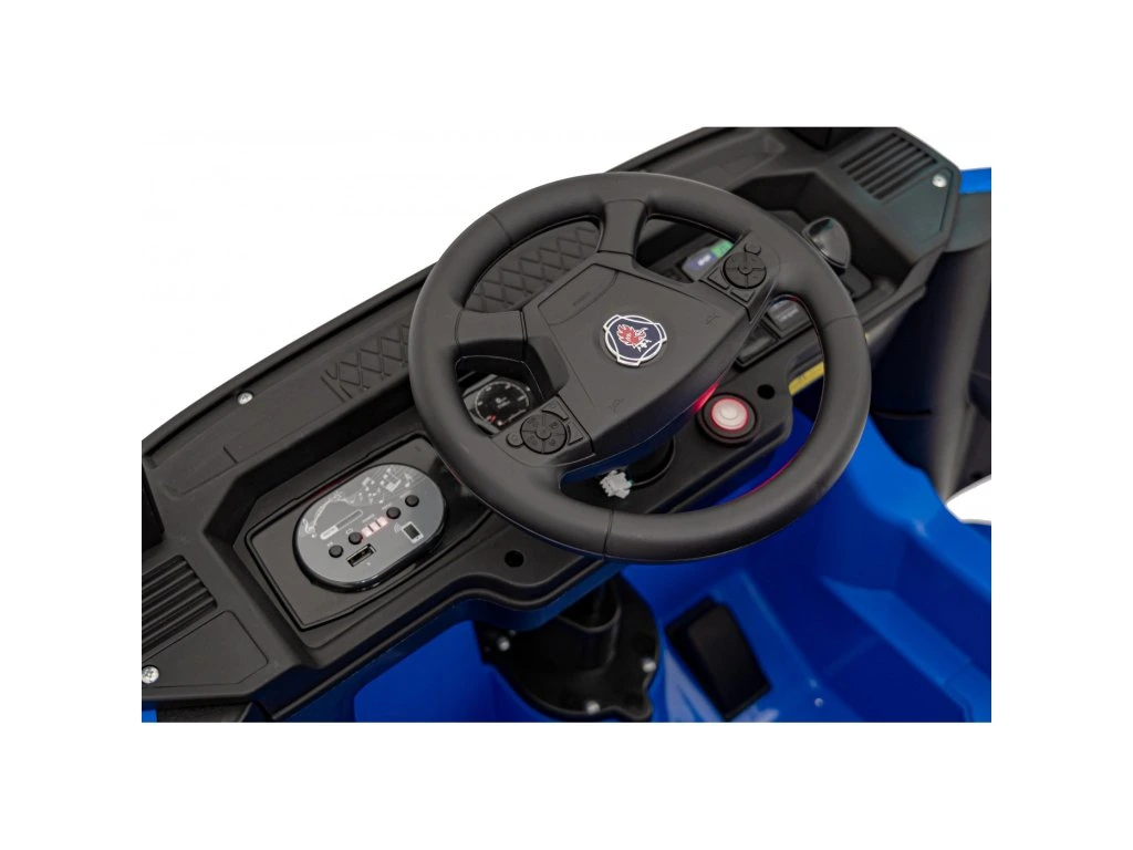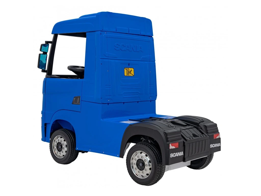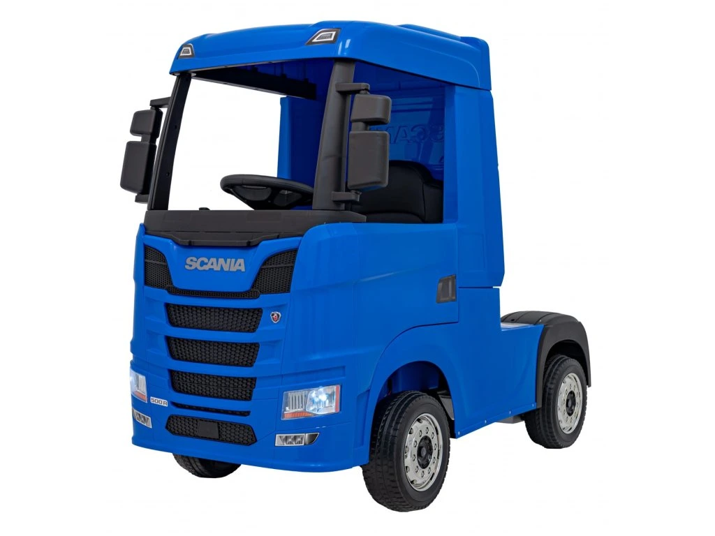 Акумулаторен камион Scania R-SERIE 4x4 син е детайлно изработен електрически камион за деца, който ще зарадва всички малки любители на пътищата и големите машини. Със четири мотора с мощност 35W и два акумулатора 12V/7Ah предлага достатъчно сила за бързо движение дори по леко неравен терен. Благодарение на функцията „меко потегляне“ тръгването е плавно и безопасно.