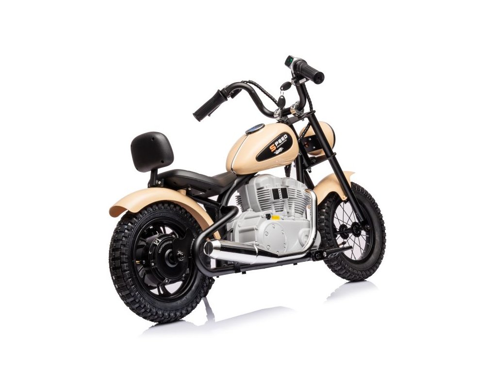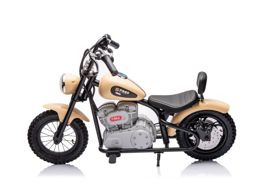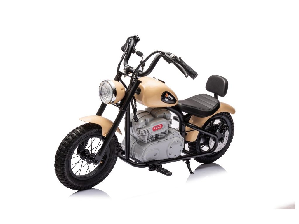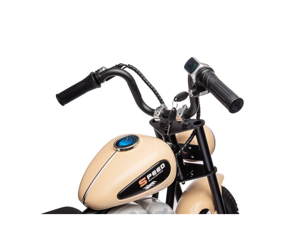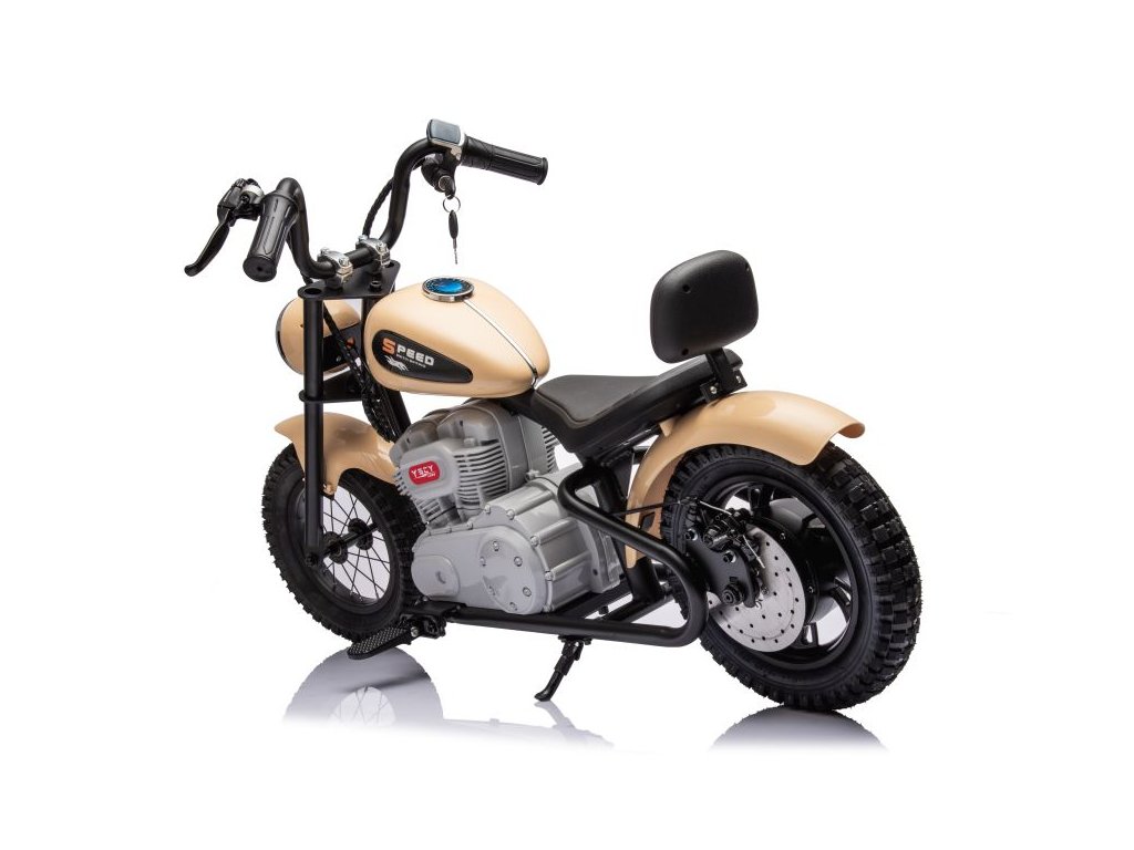 Акумулаторен мотор A9902 36V 350W бежов е незаменима играчка в детския гараж. Моторът се захранва от две батерии с капацитет 2 x 18V 9Ah. Максималното натоварване на моторчето е 80 кг. Детето със сигурност ще се впечатли от предното LED осветление и стартирането с ключ.