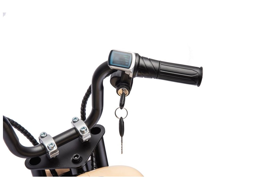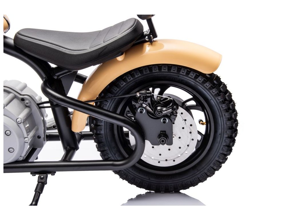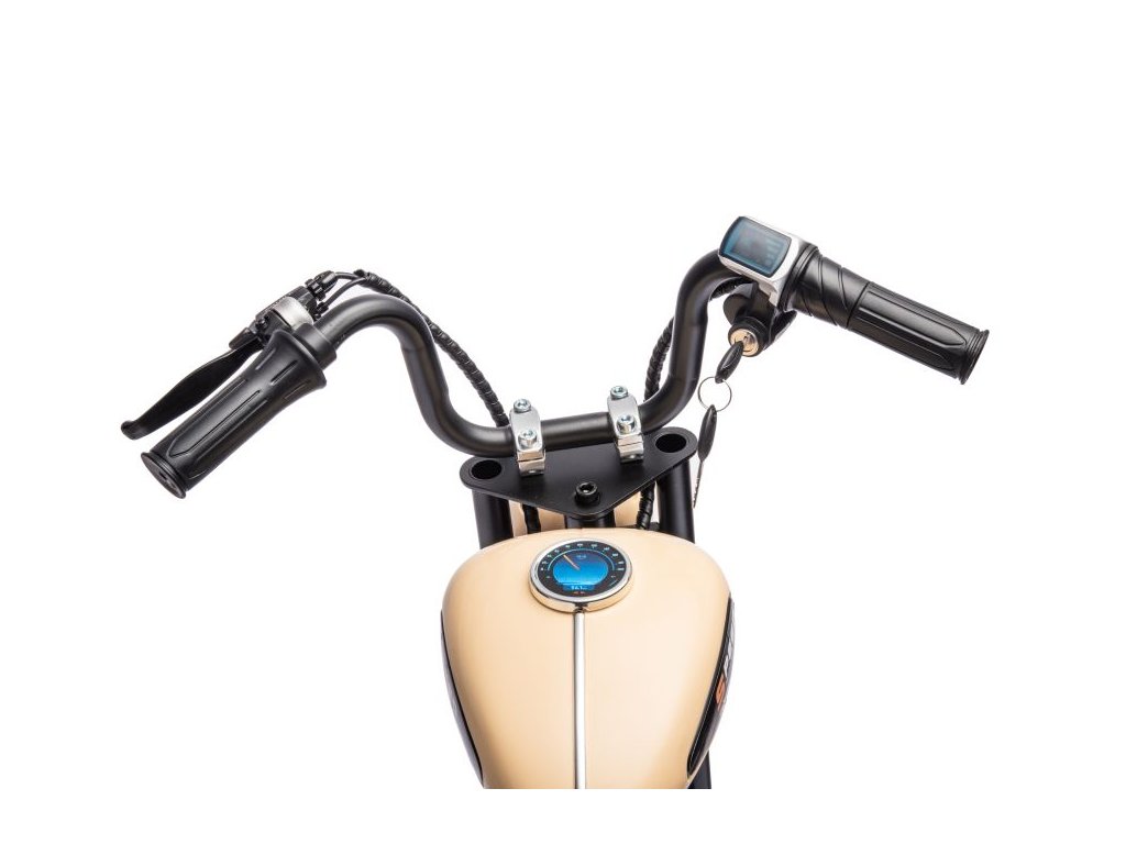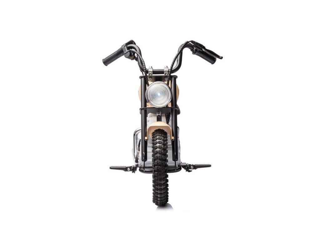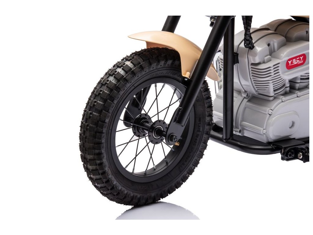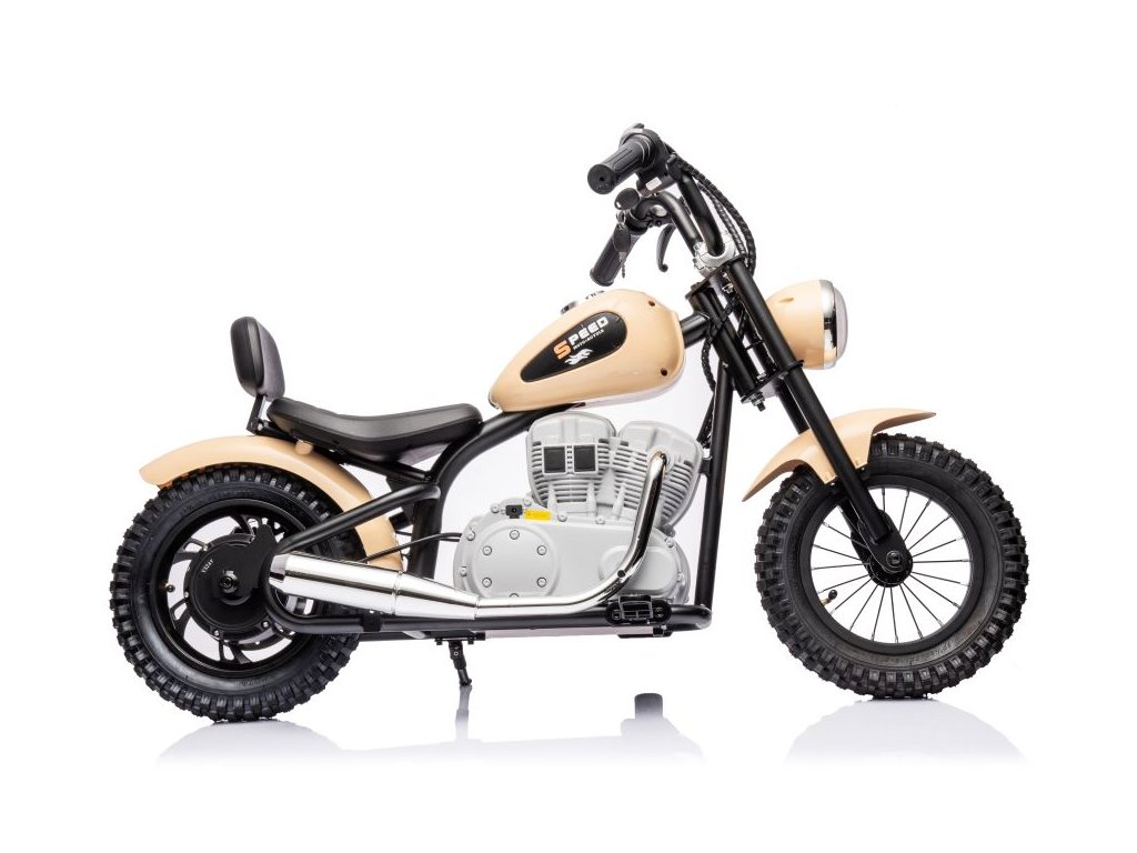 Акумулаторен мотор A9902 36V 350W бежов е незаменима играчка в детския гараж. Моторът се захранва от две батерии с капацитет 2 x 18V 9Ah. Максималното натоварване на моторчето е 80 кг. Детето със сигурност ще се впечатли от предното LED осветление и стартирането с ключ.