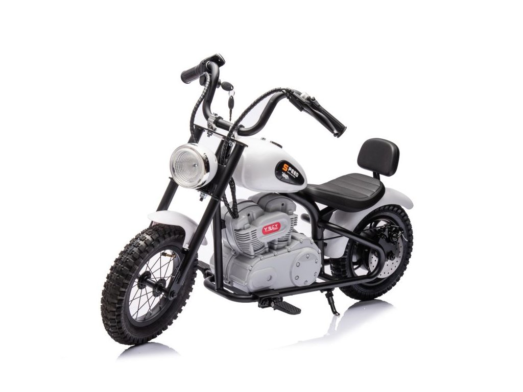 Акумулаторен мотор A9902 36V 350W бял е задължителен аксесоар във всяко детско гаражче. Моторът се захранва от две батерии с капацитет 2x18V 9Ah. Максималното допустимо натоварване на превозното средство е 80 кг. Детето ще бъде привлечено от предната LED светлина и стартиране с ключ.