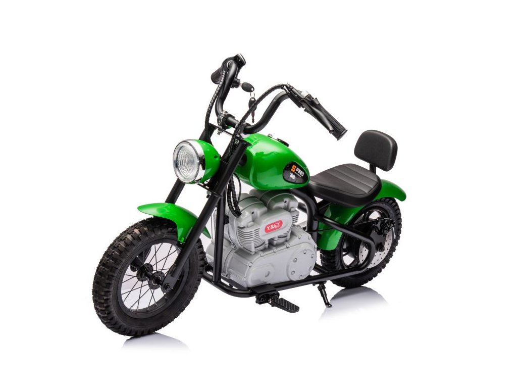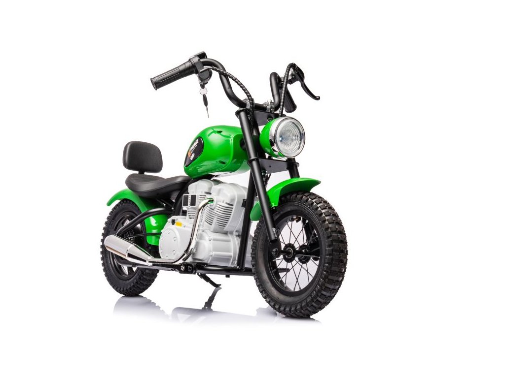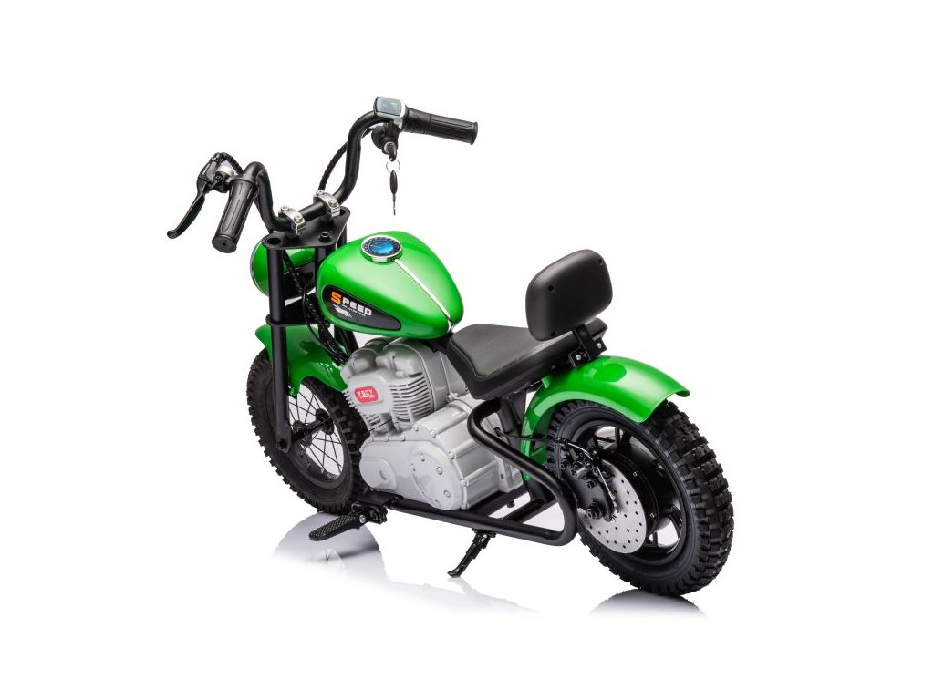 Акумулаторен мотор A9902 36V 350W зелен е незаменим в детския гараж. Превозното средство се задвижва от две батерии с капацитет 2x18V 9Ah. Максималното натоварване на мотора е 80 кг. Детето ще бъде привлечено от предната LED светлина и стартиране със симулационен ключ.