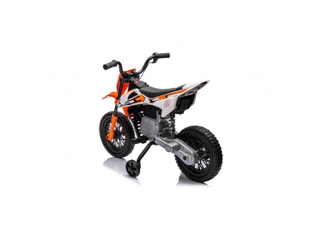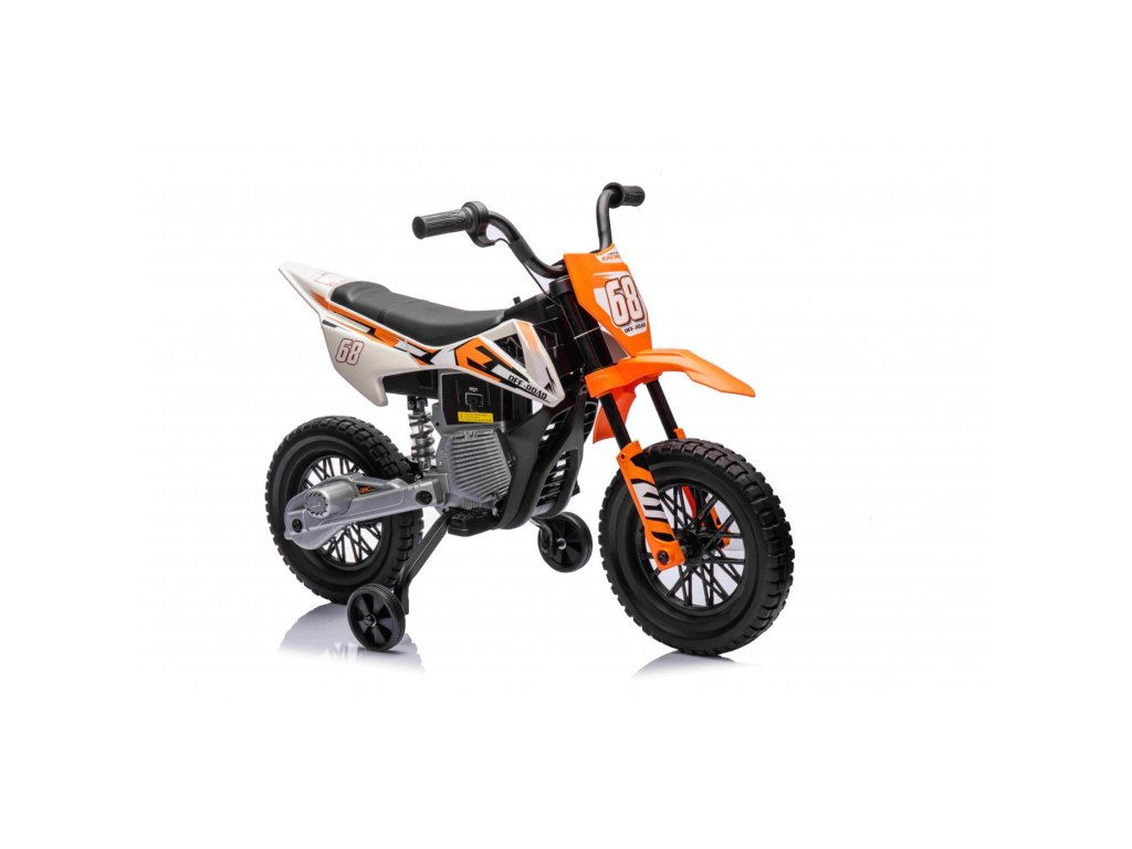 Акумулаторен мотор Cross Pantone 361C оранжев разполага с два двигателя с мощност 30W и акумулатор с капацитет 12V 4,5Ah. Моторът е оборудван с леки EVA пяни колела, които се адаптират към различни повърхности. За по-малките деца моторът има странични колела, които лесно могат да се демонтират, когато детето порасне.