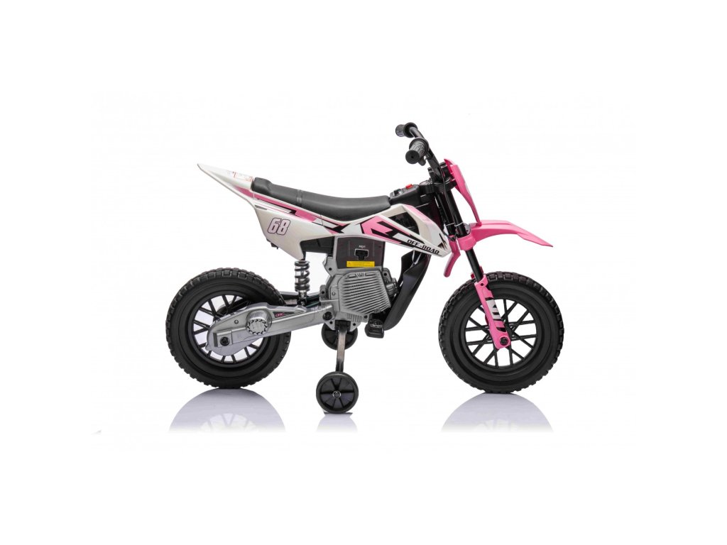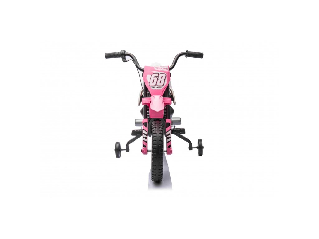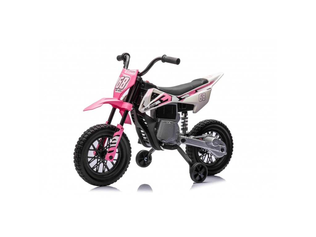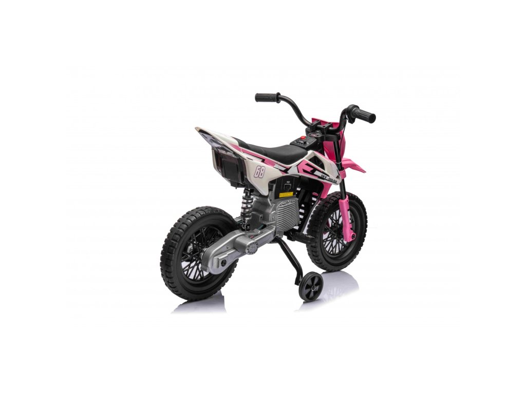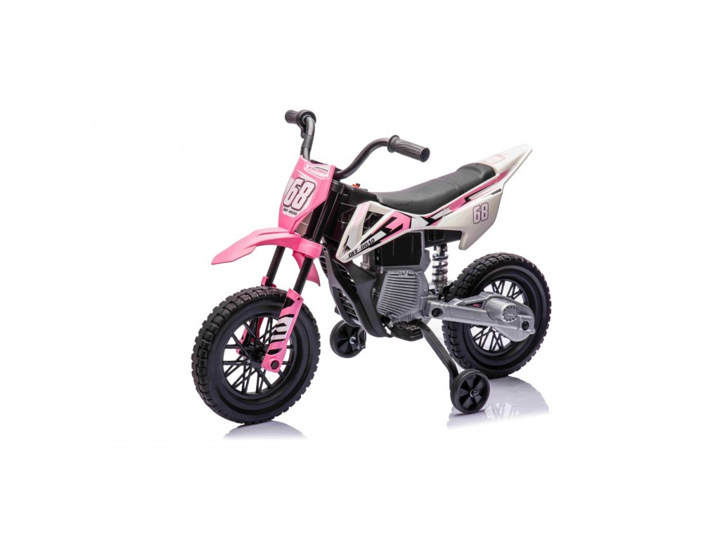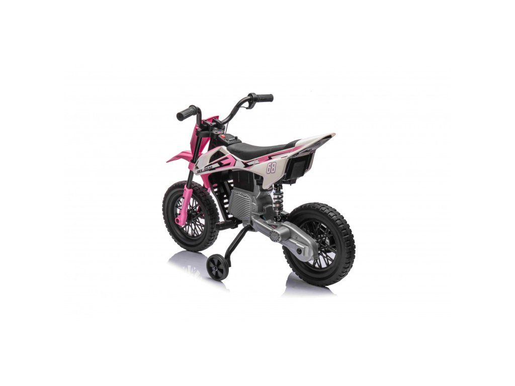 Акумулаторен мотор Cross Pantone 361C розов е оборудван с два мотора с мощност 30W и акумулаторна батерия с капацитет 12V 4,5Ah. Моторът разполага с олекотени EVA пяна гуми, които се адаптират към различни повърхности. За по-малките шофьори моторът има странични колелца, които могат лесно да се премахнат, когато детето порасне.