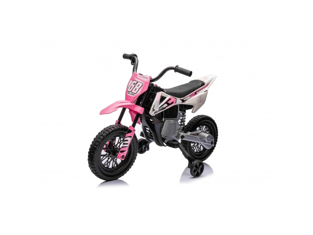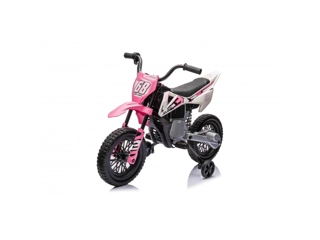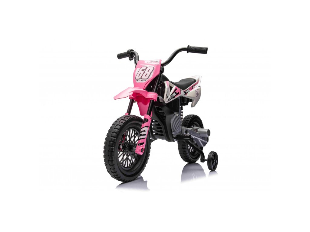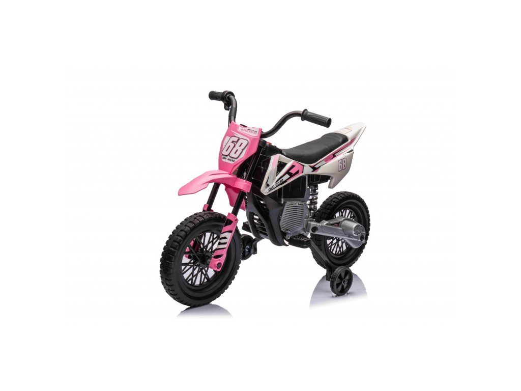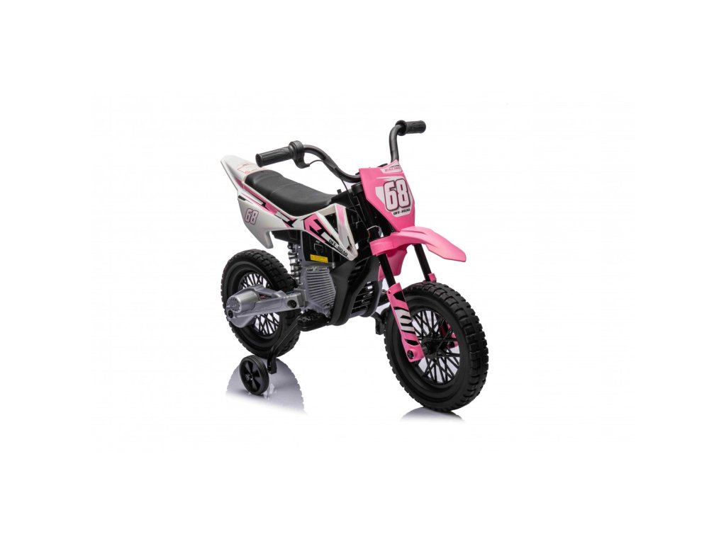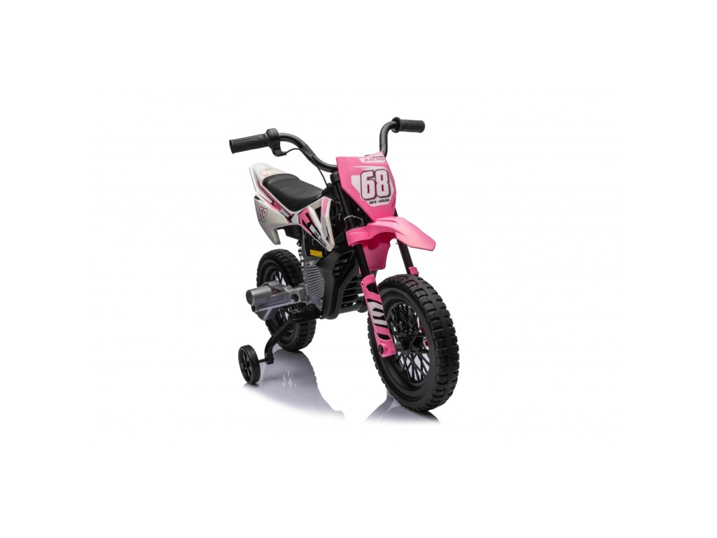 Акумулаторен мотор Cross Pantone 361C розов е оборудван с два мотора с мощност 30W и акумулаторна батерия с капацитет 12V 4,5Ah. Моторът разполага с олекотени EVA пяна гуми, които се адаптират към различни повърхности. За по-малките шофьори моторът има странични колелца, които могат лесно да се премахнат, когато детето порасне.