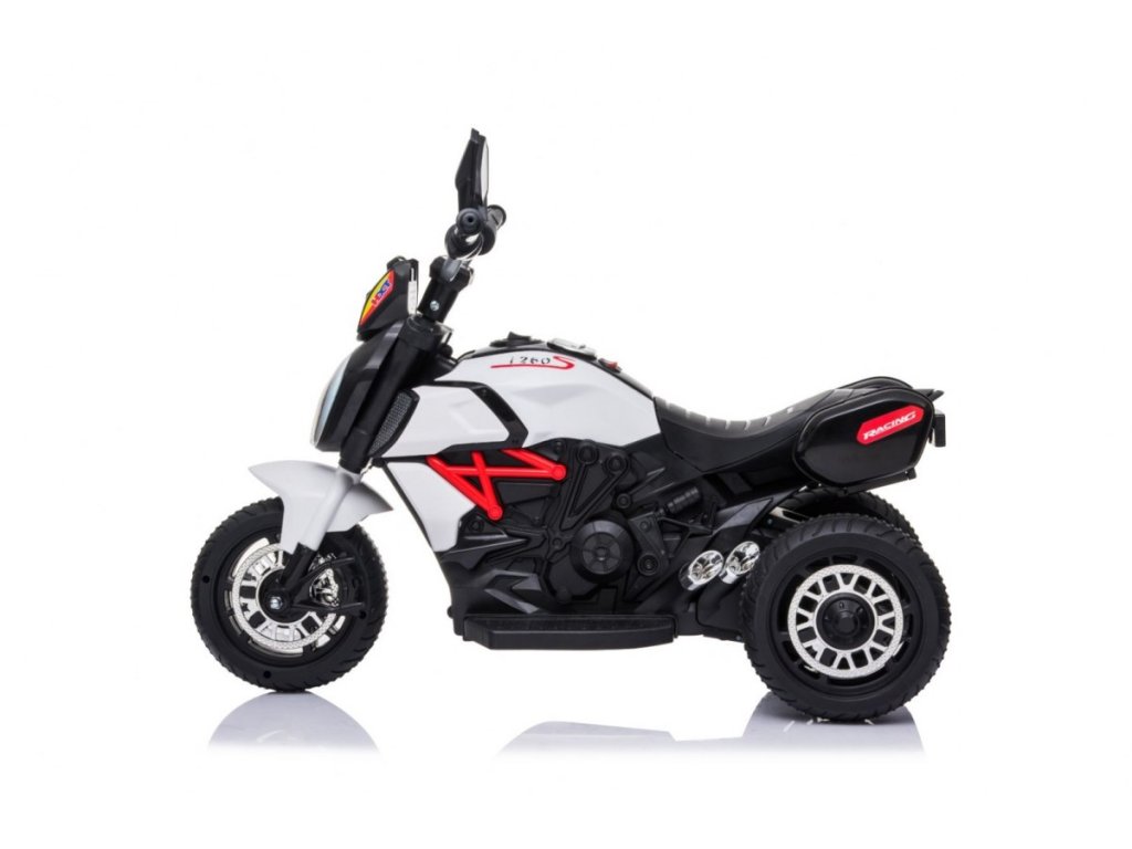 Акумулаторен мотор Fast Tourist бял е подходящ за най-малките деца от 1 до 3 години. Оборудван е с предни фарове, колела с гумено покритие и музикален панел с входове SD, AUX и USB. Разполага с функция за автоматично спиране, която се активира веднага щом кракът бъде свален от педала за газ.