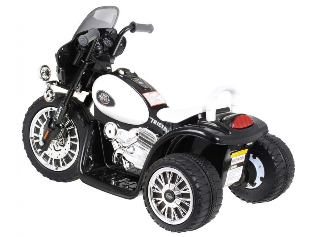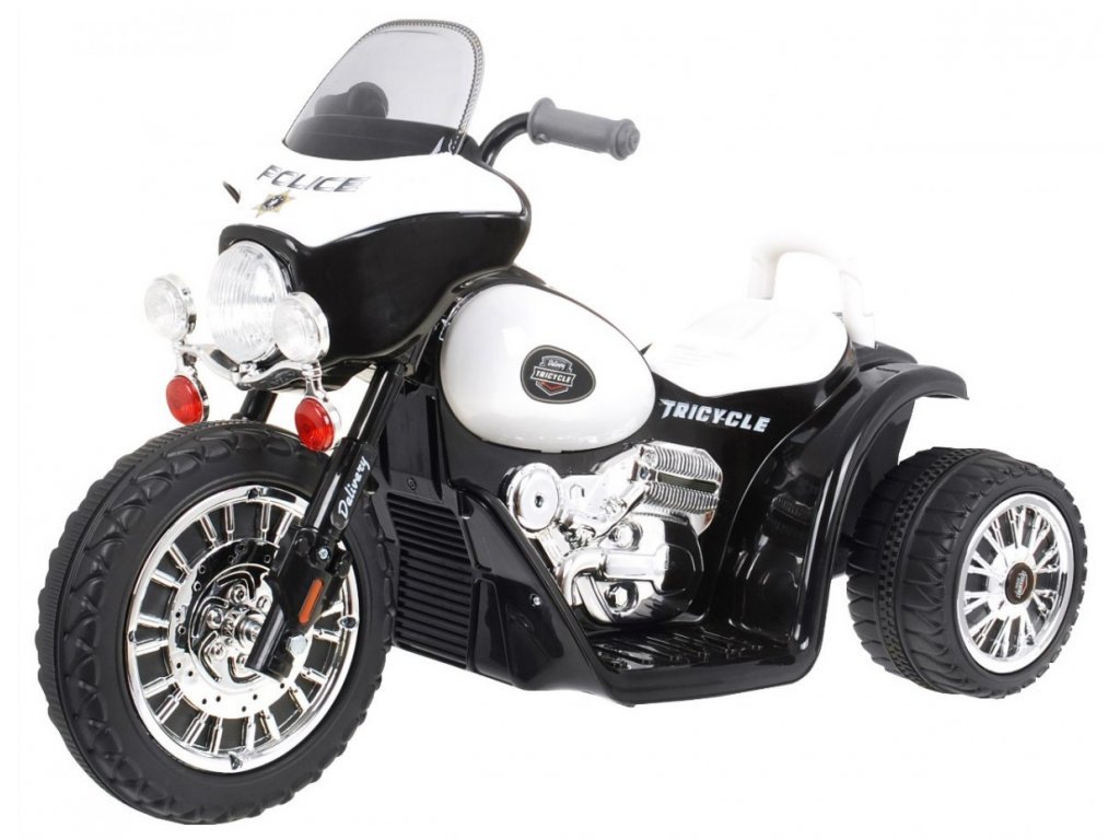 Акумулаторен мотор JT568 черен е с полицейска тема и е изработен с високо качество. Детският електрически мотор подпомага развитието на шофьорски умения и баланс при децата. Това е отличен спътник за разходки с цялото семейство или за забавления в двора. Моторът може да се движи напред и назад. Детският мотор достига скорост до 3 км/ч. За спиране е достатъчно просто да се отмени натиска върху педала. Детският мотор JT568 може да бъде използван до 1 час с едно зареждане, като времето за зареждане е 8 часа. Моторът е подходящ за деца над 3 години и разполага с европейски сертификат за безопасност CE.