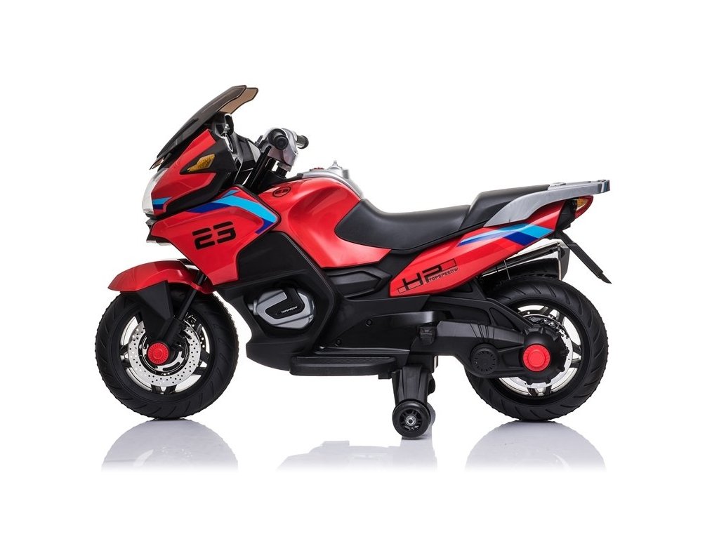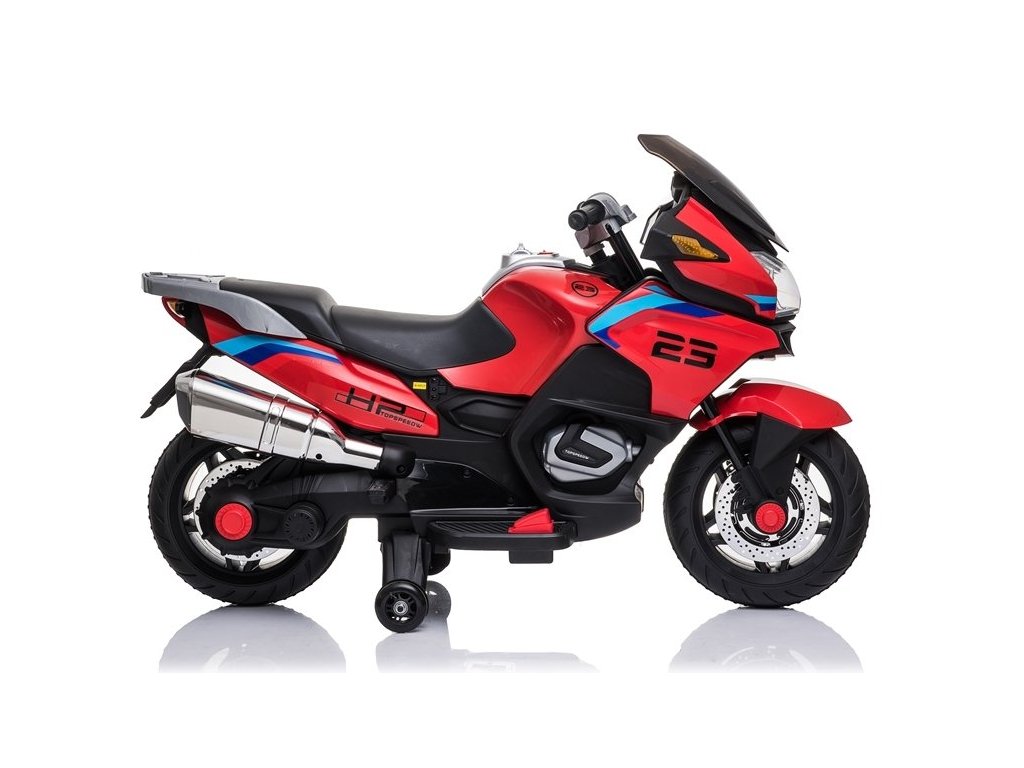 Детски акумулаторен мотор Акумулаторен мотор XMX609 червен e отлично допълнение за семейства с деца за разходки или отдих в градината. Акумулаторен мотор за малки състезатели е изработен от качествен твърд пластмасов материал. Чрез карането на детски мотор детето развива своите умения за управление и баланс. Моторът се движи напред и назад и е оборудван с ергономично седалка за максимален комфорт на детето. Моторът поддържа около един час работа без презареждане. Зарядното устройство за мотора е включено в комплекта. Моторът е предназначен за деца над 3 години и разполага с LED осветление, което гарантира видимост дори при намаляваща светлина, защото детето ще иска да прекарва часове в каране на този детски мотор. Моторът развива скорост от 3 до 7 км/ч. Моторът е сертифициран с европейския знак за безопасност CE.