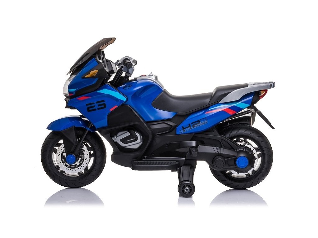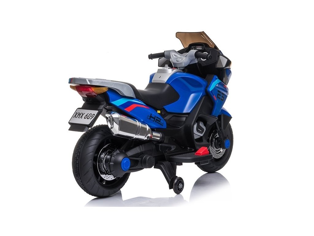 Детски акумулаторен мотор XMX609 синя е отличен избор за семейства с деца за разходка или почивка в градината. Акумулаторният мотор за малките състезатели е изработен от висококачествен твърд пластмасов материал. Благодарение на карането на детския мотор, детето развива своите умения за управление и баланс. Моторът се движи напред и назад и е оборудван с ергономично седло, което осигурява комфорт на детето. Моторът работи до около час без нужда от зареждане. Зарядното устройство за мотора е включено в комплекта. Моторът e подходящ за деца над 3 години и е снабден с LED светлини, за да е детето видимо дори при намалена светлина, тъй като малчуганът ще иска да прекарва часове с този детски мотор. Моторът се движи с възможна скорост от 3 до 7 км/ч. Моторът има европейски сертификат за безопасност CE.