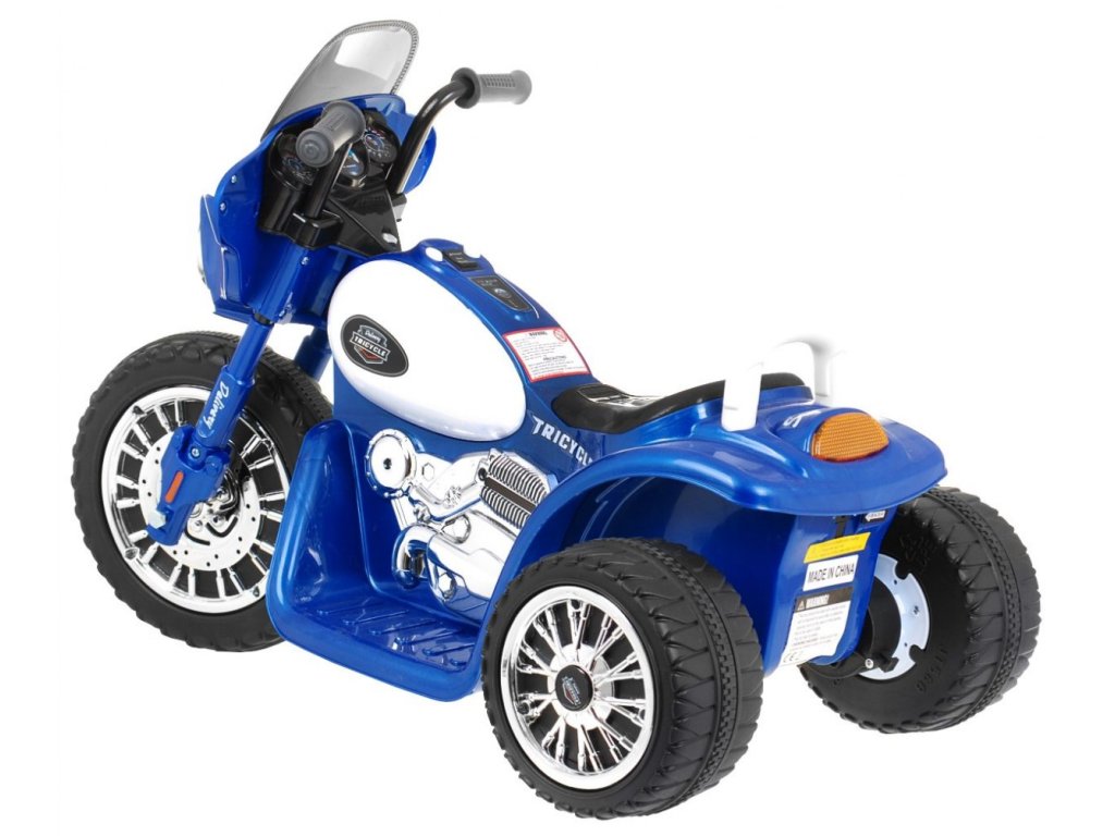 Полицаен мотор, изработен от здрава пластмаса, качествени материали и с отлично изпълнение. Акумулаторен мотор за деца син може да се движи в две посоки – напред и назад. Управлява се чрез бутон за превключване на резервоара и педал с крак на стъпалото. Моторът автоматично спира, когато кракът се вдигне от педала. Моторът има светлини и звукови ефекти като клаксон, звук на мотор и стартиране. С този детски мотор децата с радост ще играят на полицаи.