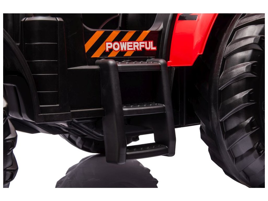 Акумулаторен трактор A011 24V 400W червен е незаменим в гаража на всяко дете. Превозното средство се захранва от две батерии с капацитет 12V 10Ah. Максималното натоварване на трактора е 35 кг. По време на каране детето ще бъде очаровано от музикалния панел с MP3 и USB вход.