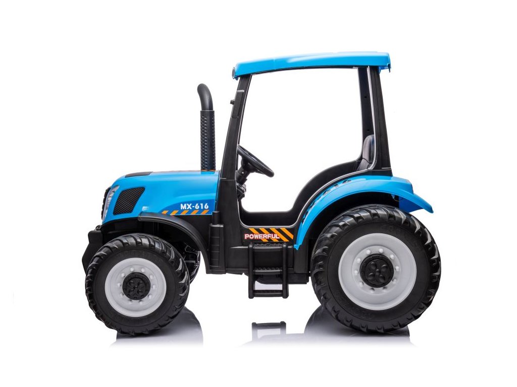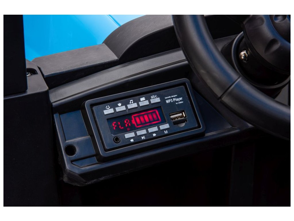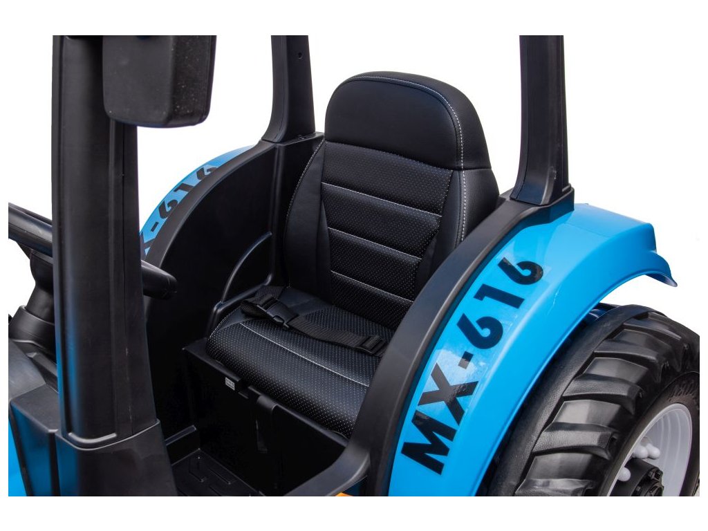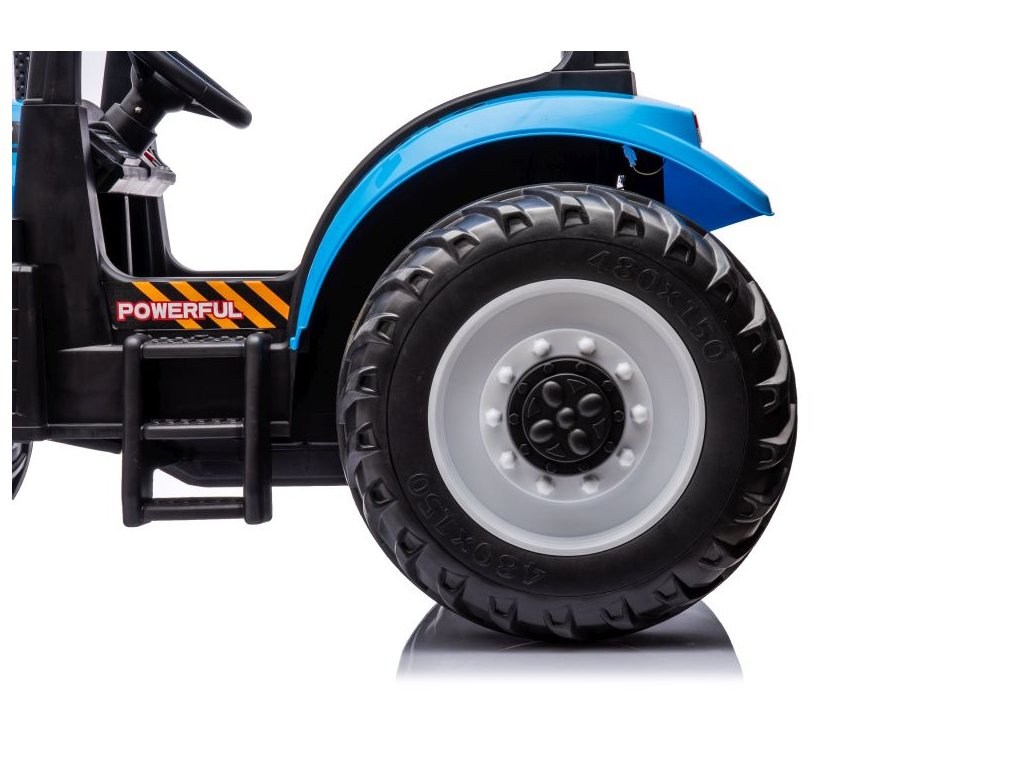 Акумулаторен трактор A011 24V 400W син е незаменим аксесоар във всяко детско паркиране. Превозното средство се захранва от две батерии с капацитет 12V 10Ah. Максималното допустимо натоварване на трактора е 35 кг. По време на каране детето ще се забавлява с музикалния панел с MP3 и USB.
