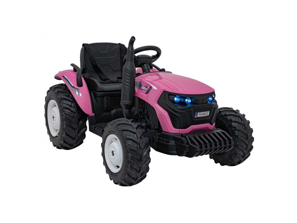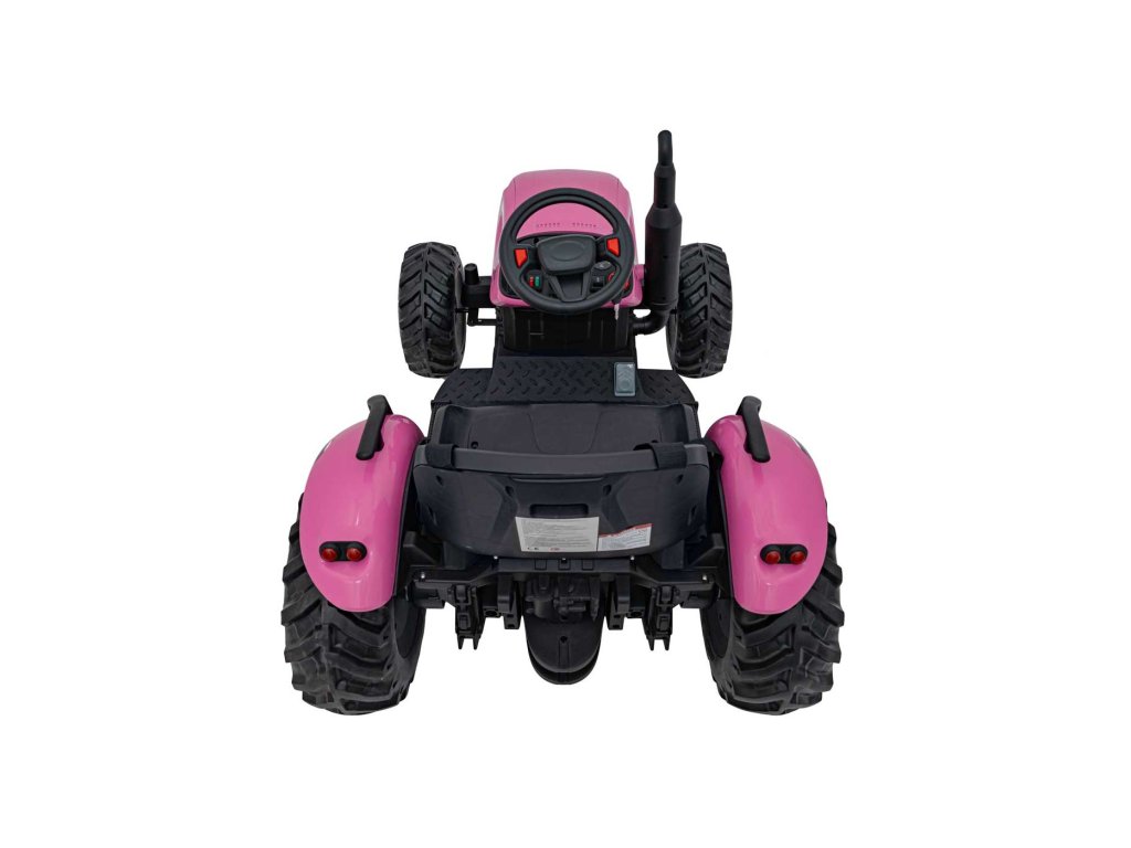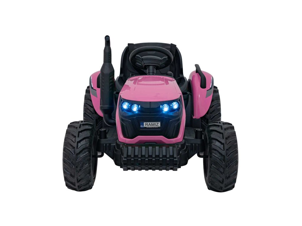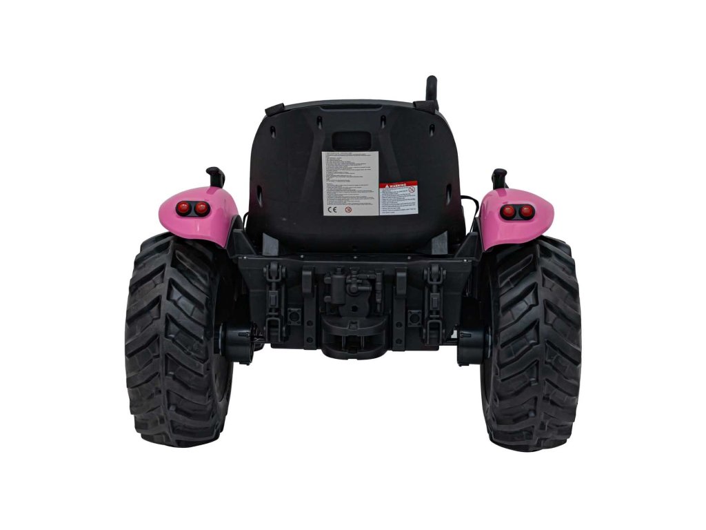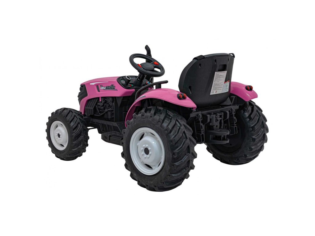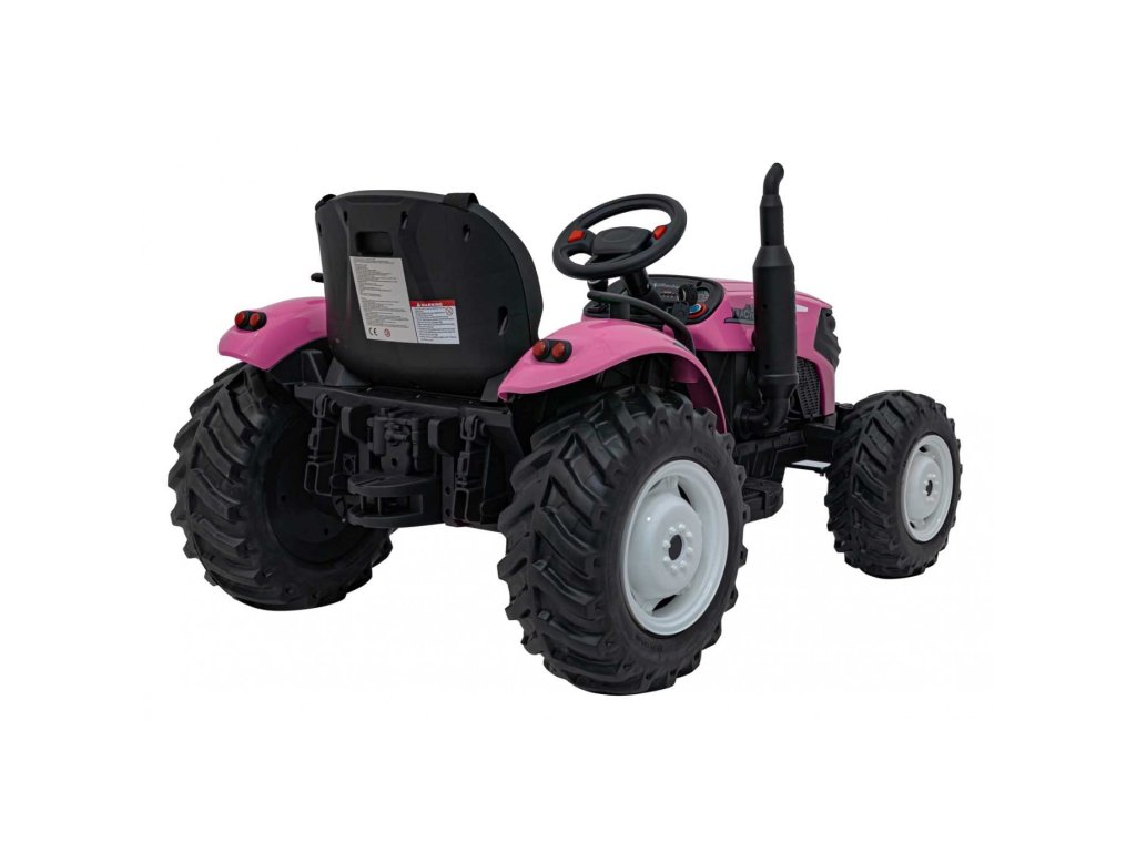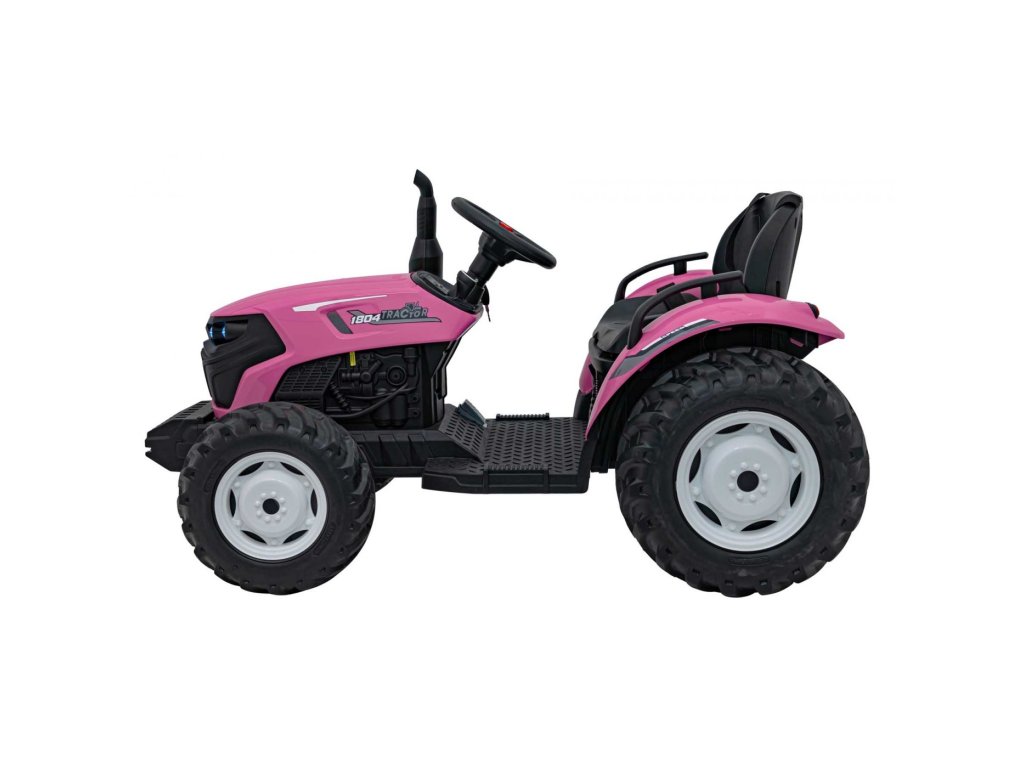 Детски акумулаторен трактор GROW 1804 24V розов разполага с два мотора с обща мощност 200W и батерия с капацитет 24V 7Ah. Тракторът е оборудван с предни LED светлини и музикален панел с Bluetooth, както и входове за MP3 и USB. Максималното натоварване на трактора е 30 кг.