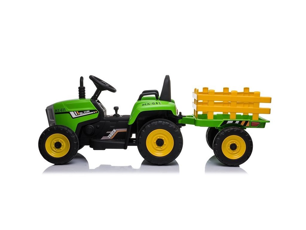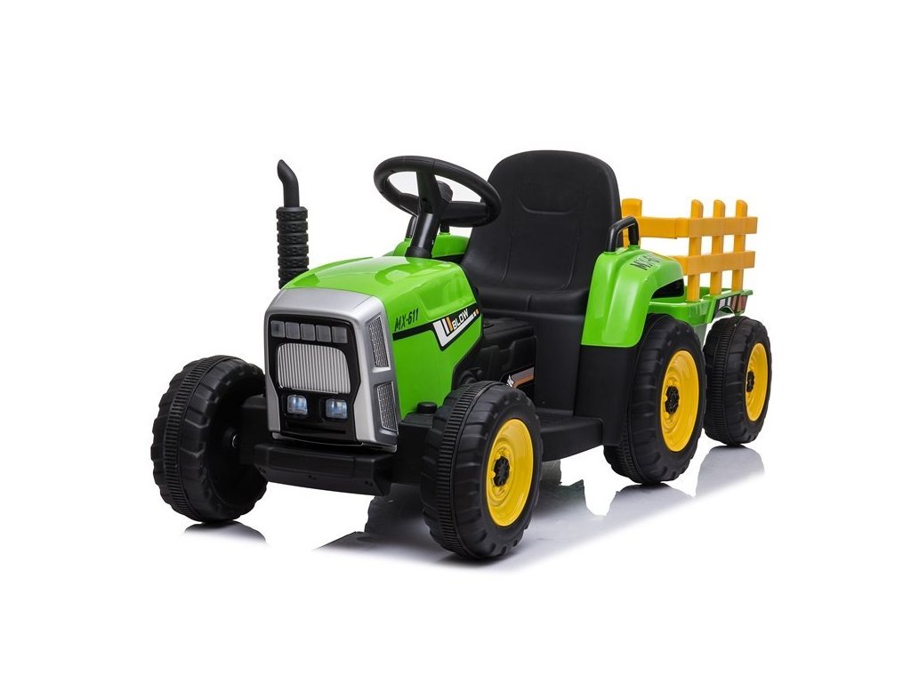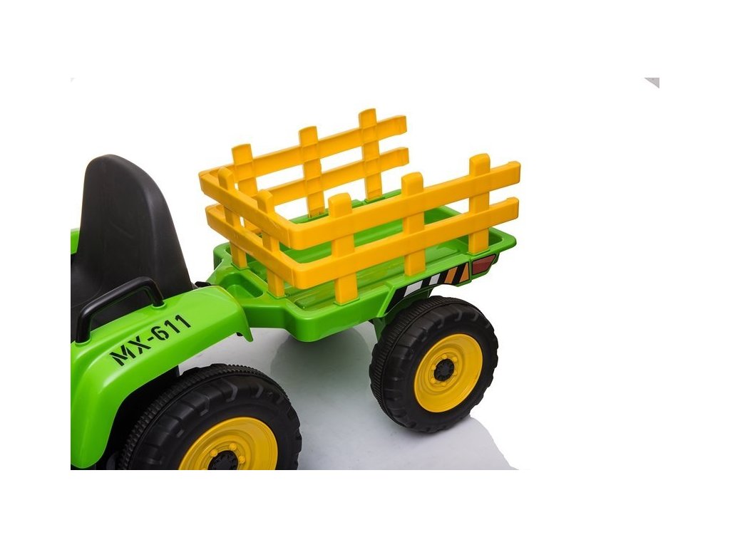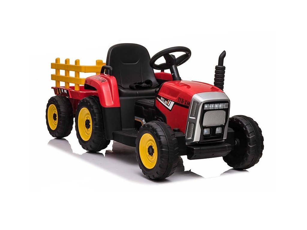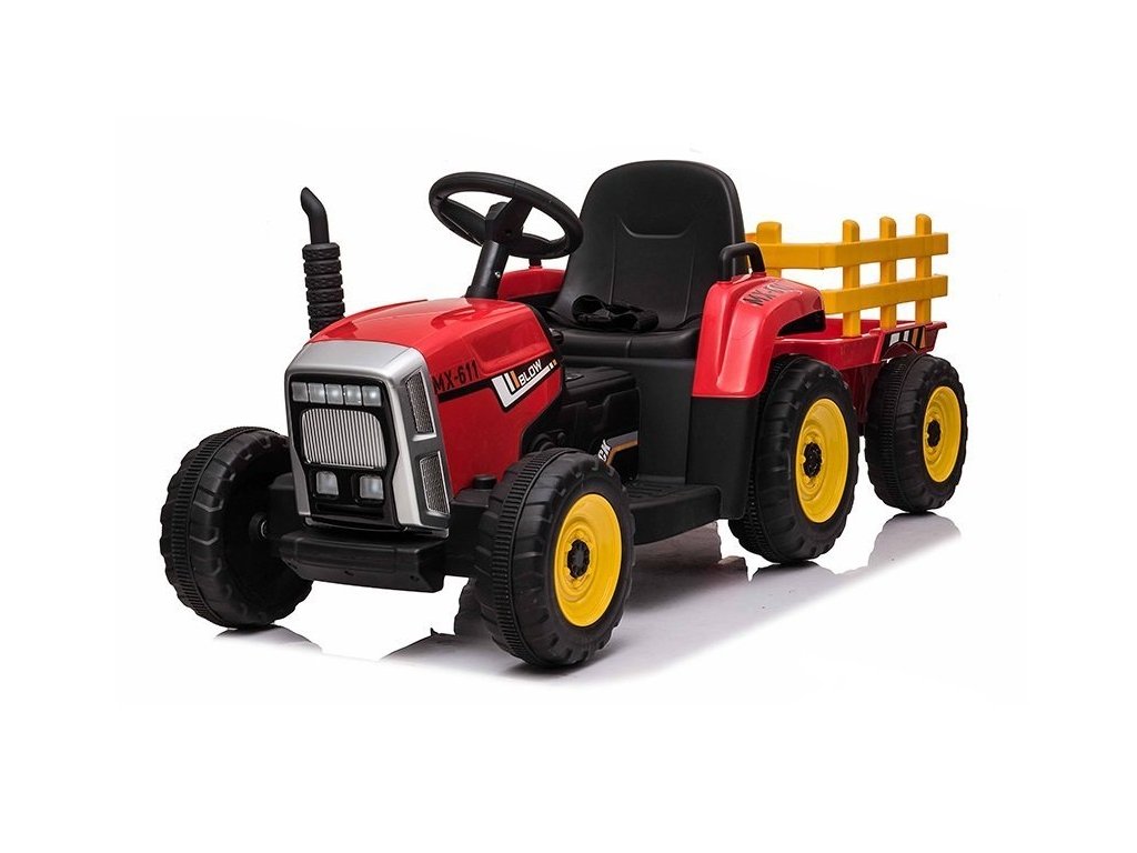 Акумулаторен трактор с червен ремарке с два електрически мотора, които задвижват и двете задни колела, подходящ е за каране и в пресечена местност. Дори най-малките могат лесно да се справят с управлението. Тракторът е голям, мощен и изработен от висококачествен пластмасов материал в модерен дизайн, който ще зарадва младите любители на моторните превозни средства. Играчката е препоръчана от производителя за деца над 3 години и е снабдена с CE сертификат.