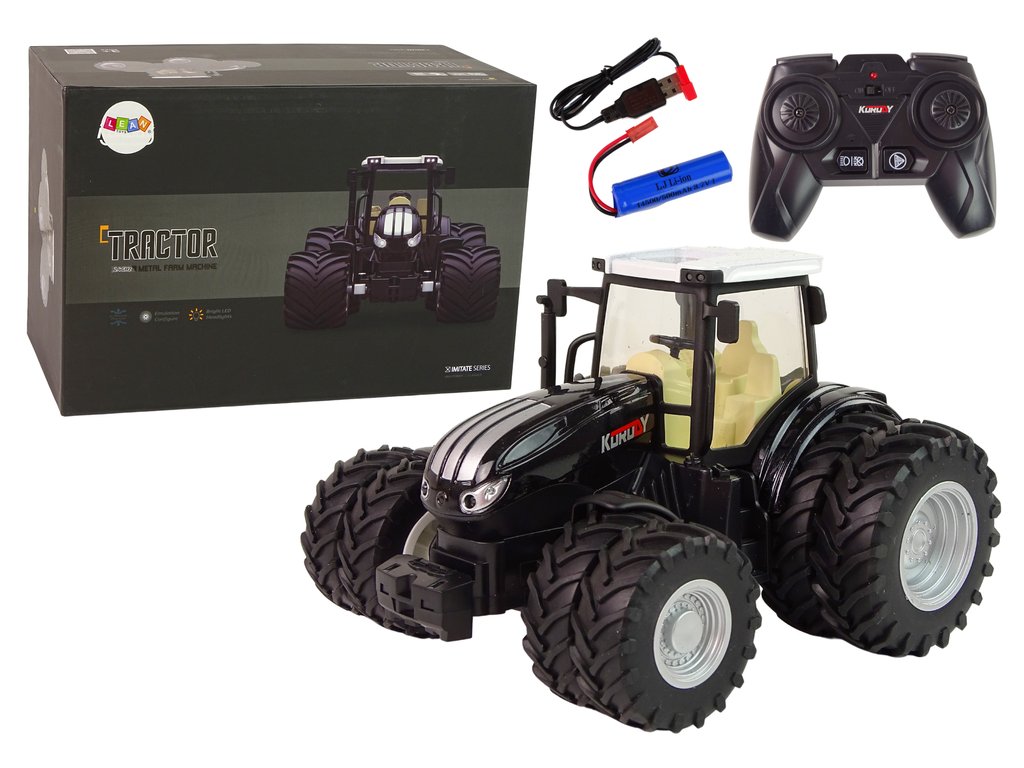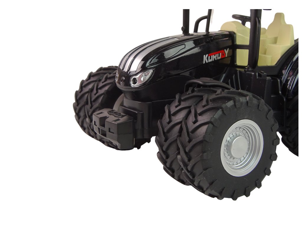 Селскостопанските играчки са голямо забавление за всяко дете. Акумулаторният трактор с дистанционно управление R/C метален 2,4 GHz черен има реалистичен дизайн, големи гумирани гуми и е изработен без остри ръбове и ъгли. Цялата му каросерия е изработена от метал, което гарантира издръжливостта му. Предните фарове светят по време на движение и осветяват пътя. Дистанционното управление работи на честота 2,4 GHz. Тракторът е изработен в мащаб 1:24.