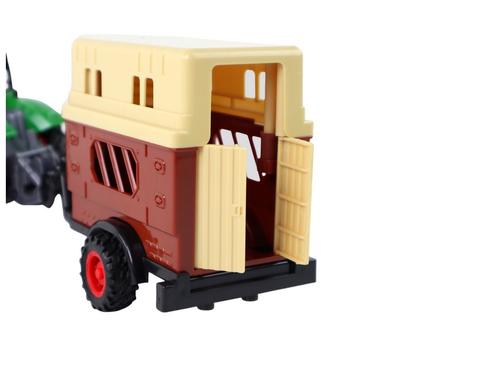 Акумулаторният трактор с ремарке разполага със светлинни ефекти, които светят вътре в кабината, придавайки на играчката по-голяма привлекателност. Играчката е изработена в мащаб 1:24, което я прави съвместима с други селскостопански модели.