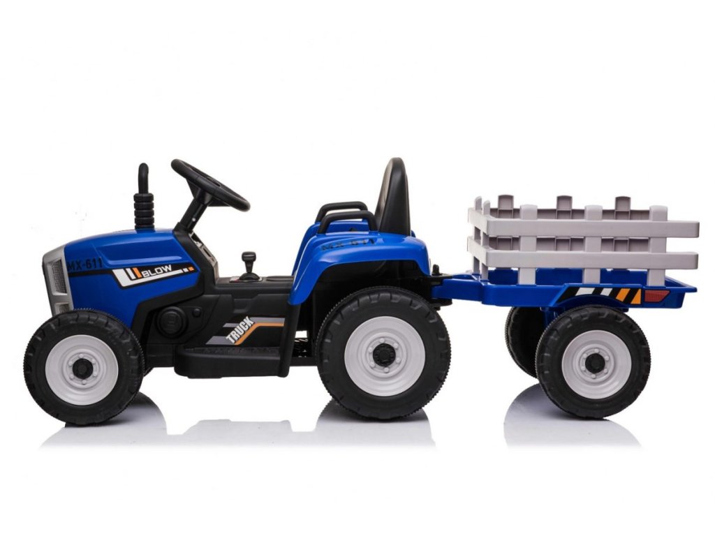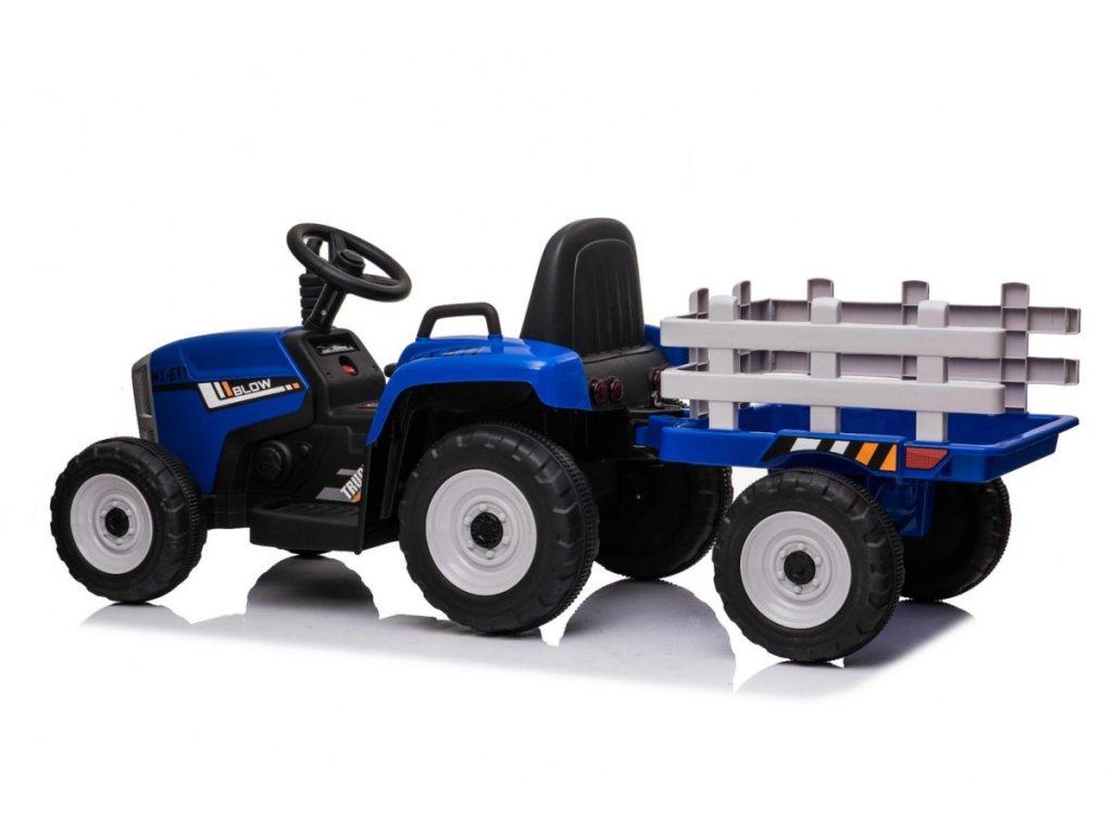 Конструкцията на акумулаторния трактор е базирана на четири колела. Голямо предимство на материалa EVA, от който са изработени гумите, е високата му издръжливост и устойчивост срещу пробиване, което позволява детето да кара на различни повърхности. Детският трактор се захранва от 12V7Ah батерия и е оборудван с два мотора по 45W. Тракторът е предназначен и за момчета, и за момичета над 3 години – единственото ограничение е максимално тегло до 30 кг.
