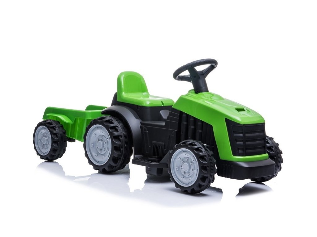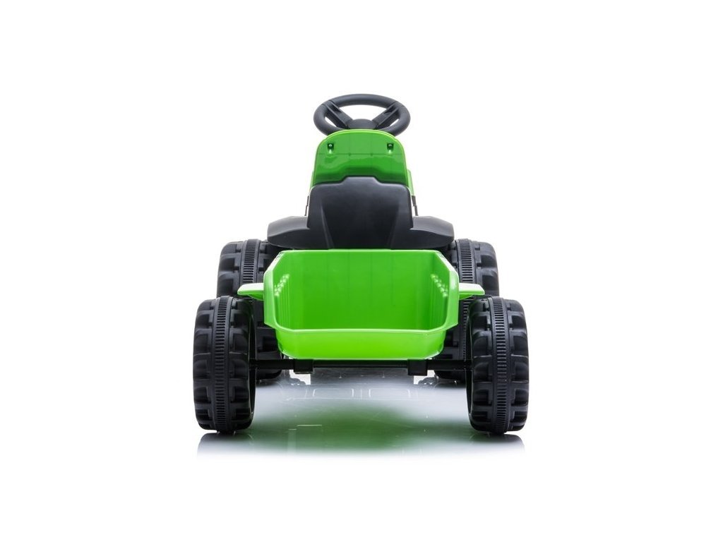 Детски акумулаторен трактор с ремарке, който е лесен за управление и стабилен. Дори най-малките могат да се справят с управлението му. Акумулаторният трактор с ремарке зелен цвят е изработен от висококачествена пластмаса в модерен дизайн и ще удовлетвори вкусовете на най-малките почитатели на моторните превозни средства. Децата, които седят зад кормилото, могат да си играят на фермери и кой знае какви още приключения ще измислят с този трактор.