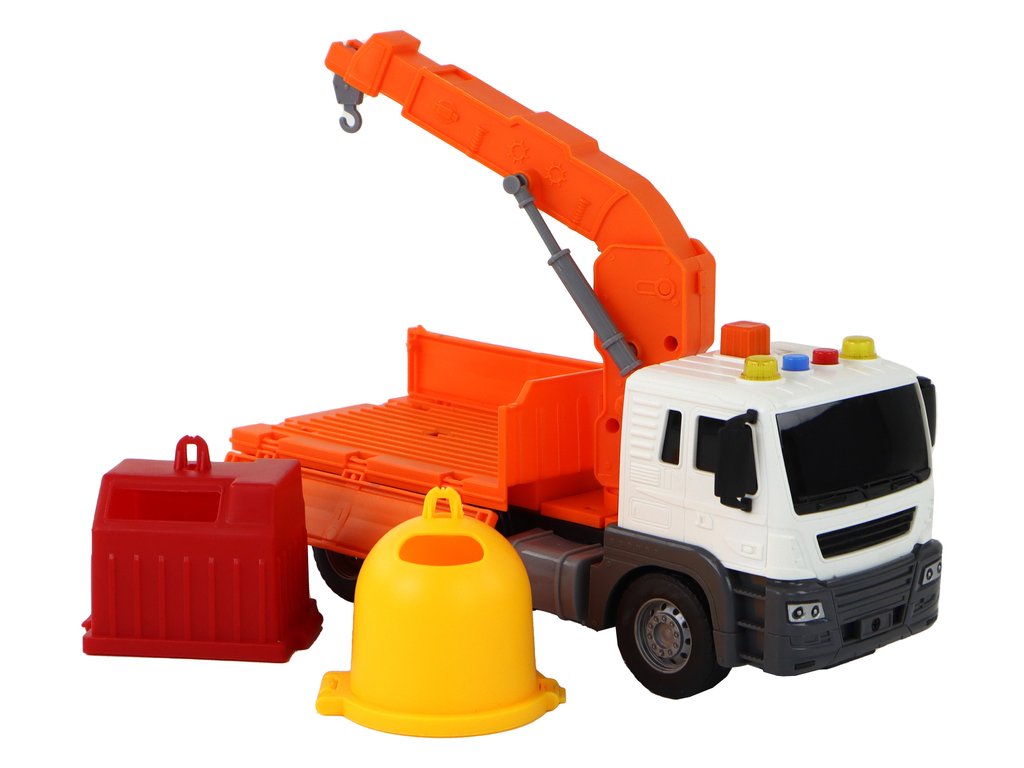 Допълнително предимство е кранът на покрива на камиона. При натискане на оранжевото копче кранът се повдига, добавяйки интерактивен елемент и стимулирайки креативността при игра. Детето може да вдига и спуска контейнери, да пресъздава сцени на събиране и сортиране на отпадъци.