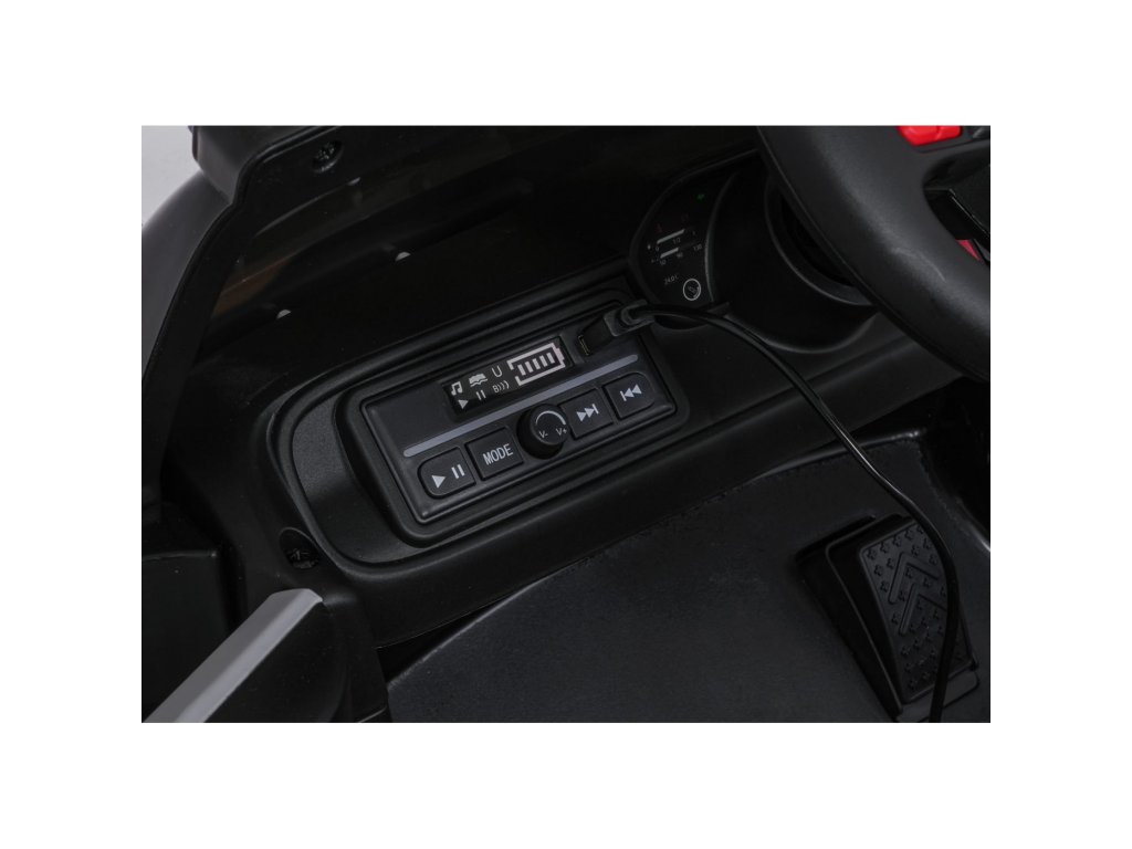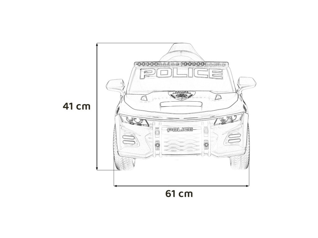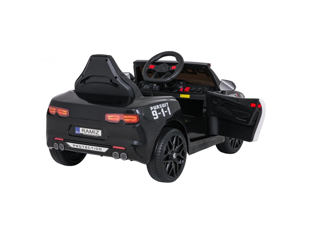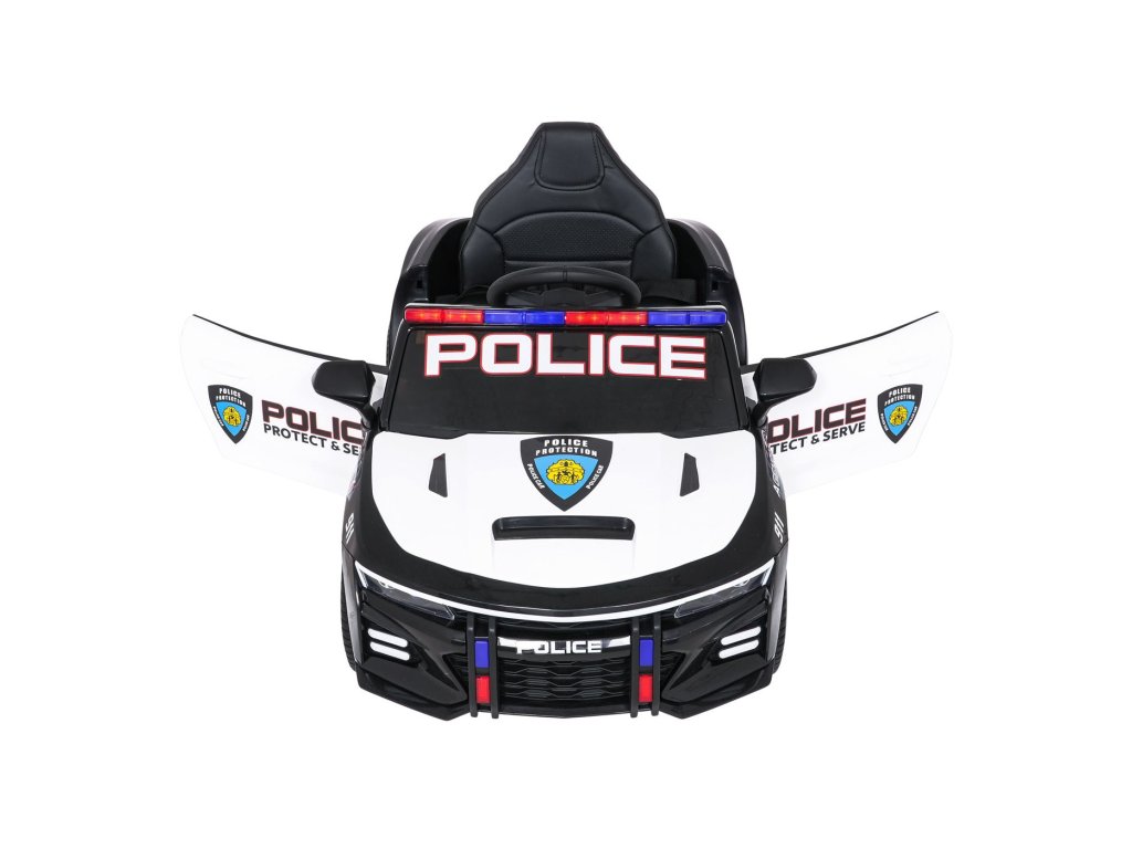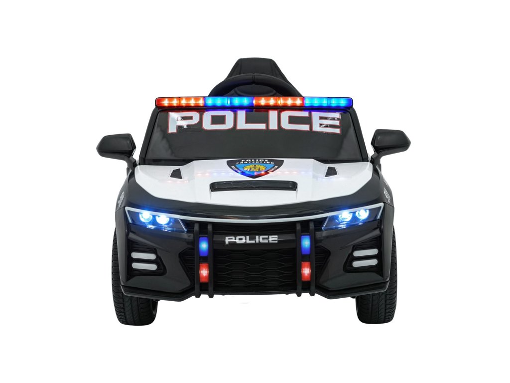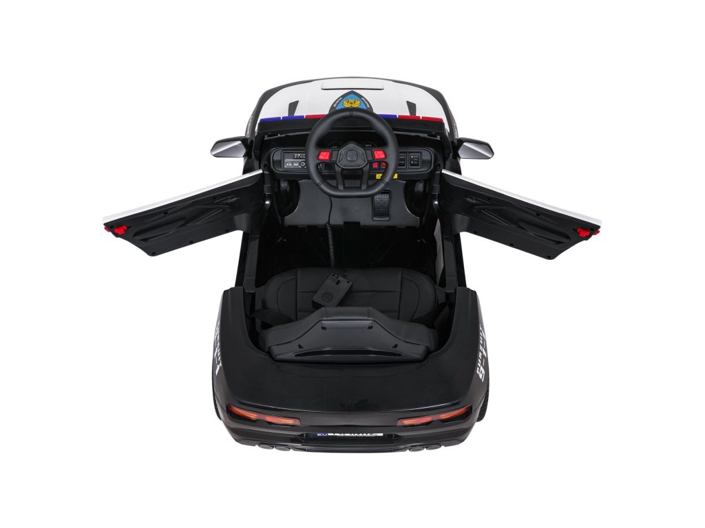 Колата е оборудвана със седалка, облечена в еко кожа с предпазен колан и отварящи се врати. Предни LED светлини, сини и червени полицейски светлини и реалистични звуци създават усещането за истински полицейски автомобил. Благодарение на мултимедиен панел с Bluetooth, USB и MP3 малките водачи могат да се насладят на любимата си музика по време на шофиране.