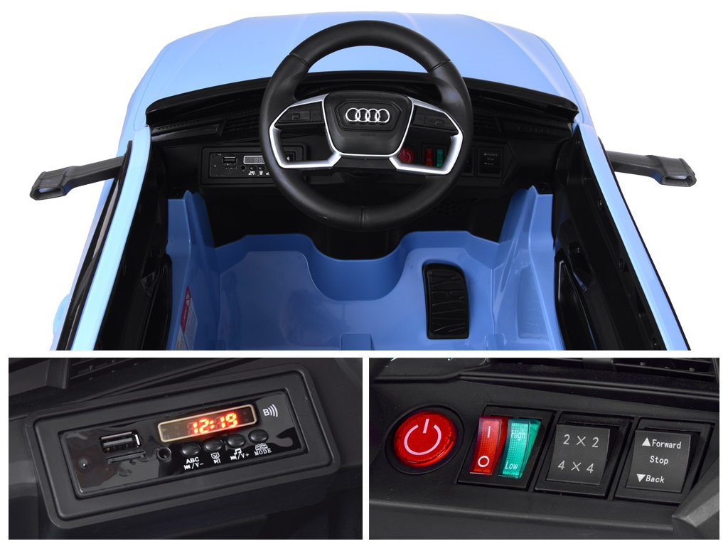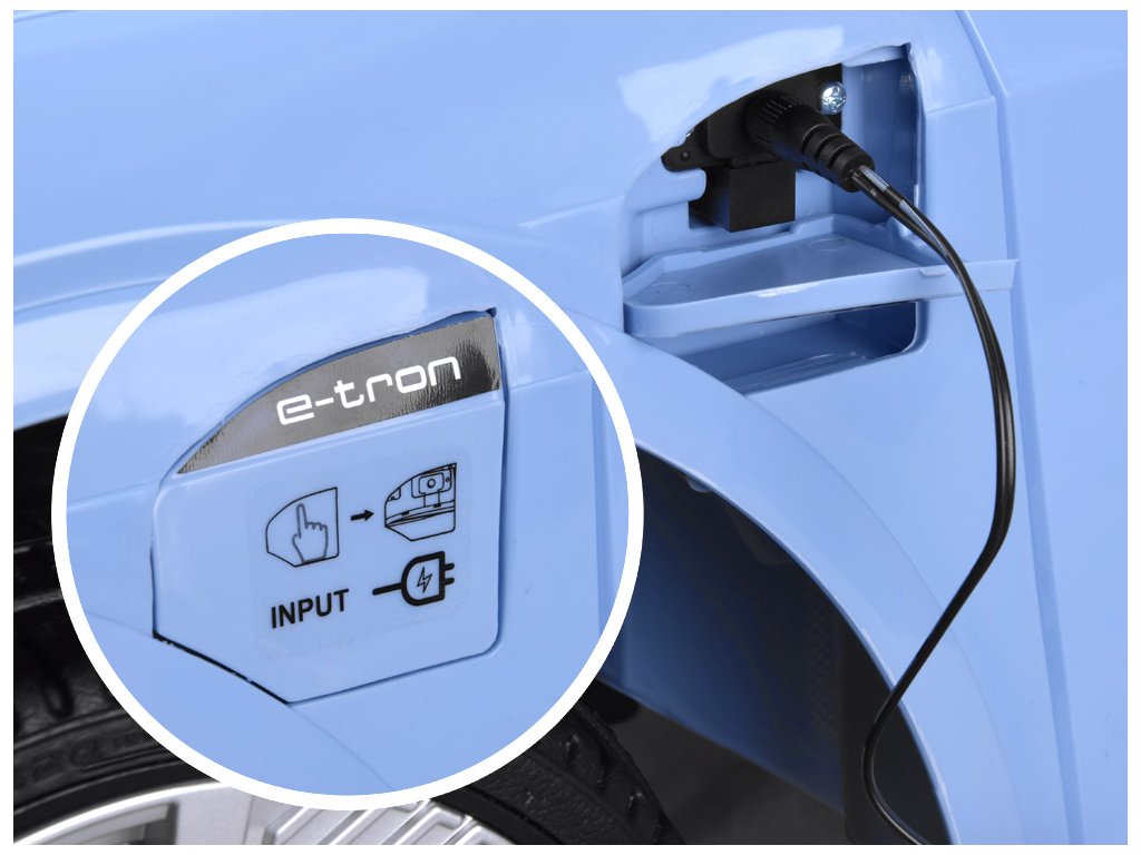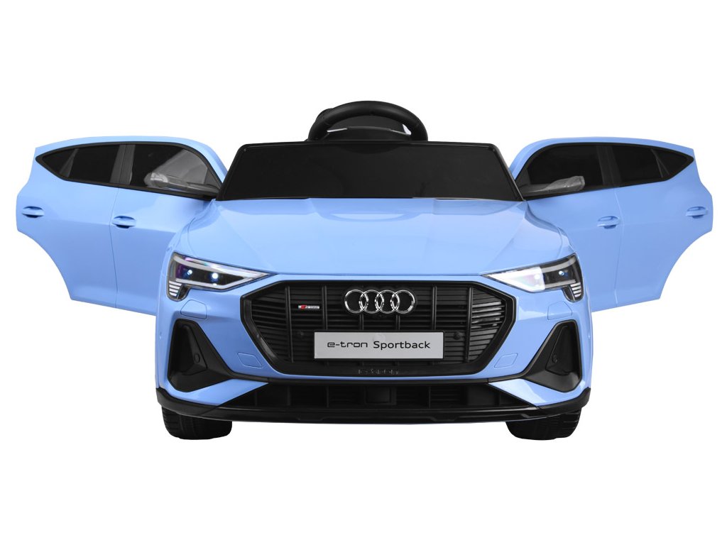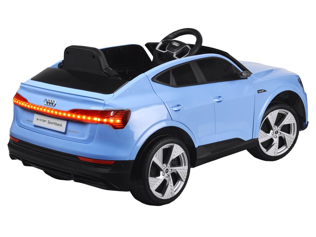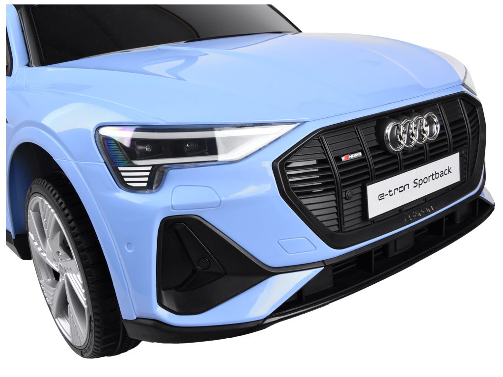 Електрическата кола Audi E-Tron Sportback има четири двигателя с мощност 35W и батерия с капацитет 12V 7Ah. Колата има музикален панел с предварително записани мелодии, входове за USB, MP3 и SD карта. На волана е поставен клаксон. Колата е оборудвана с предни и задни LED светлини. Колата се стартира с бутон и ще чуете характерните звуци на двигателя.