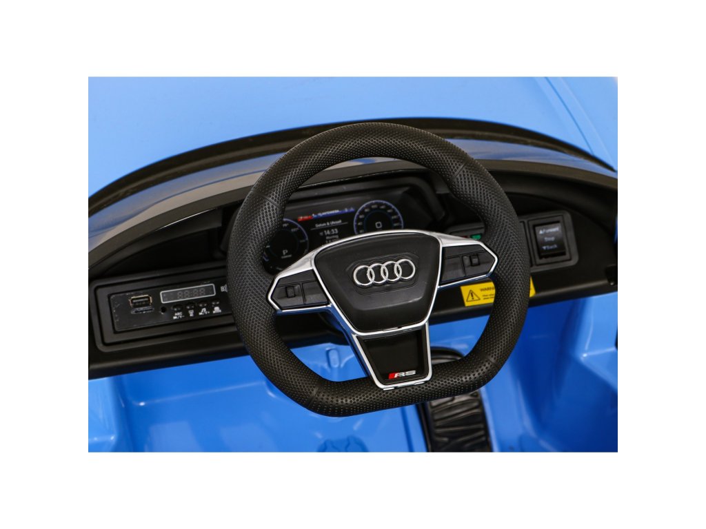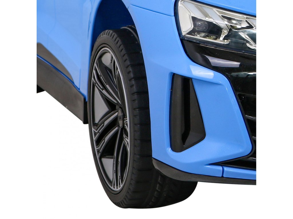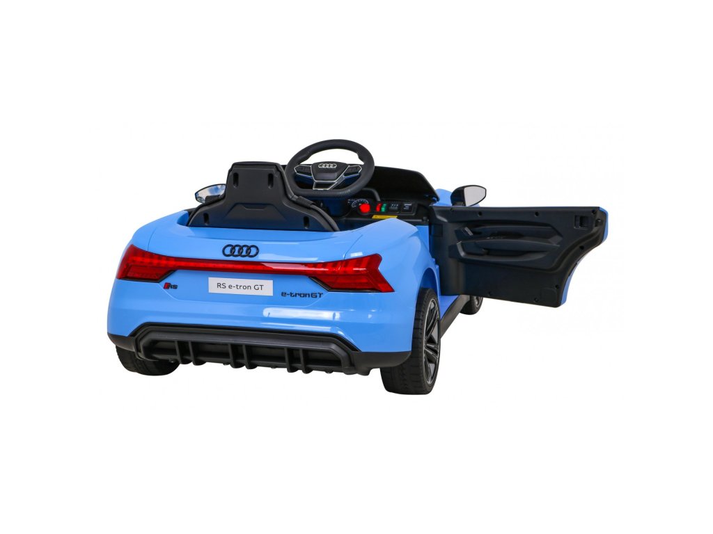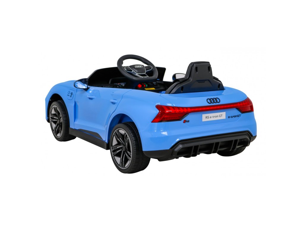 Акумулаторна кола Audi RS E-Tron GT 4x4 синя разполага с четири мотора с мощност 25W и батерия с капацитет 12V 7Ah. Товароносимостта на колата е 25 кг. За комфортно каране се грижат пянните EVA гуми. Детето ще се радва на музикален панел с MP3, Bluetooth, FM радио, входове за USB, SD карта и AUX. Седалката е изработена от екологична кожа.