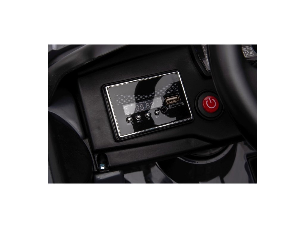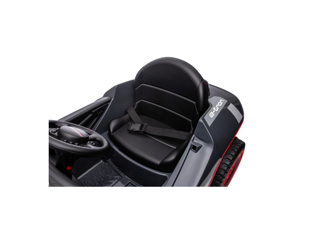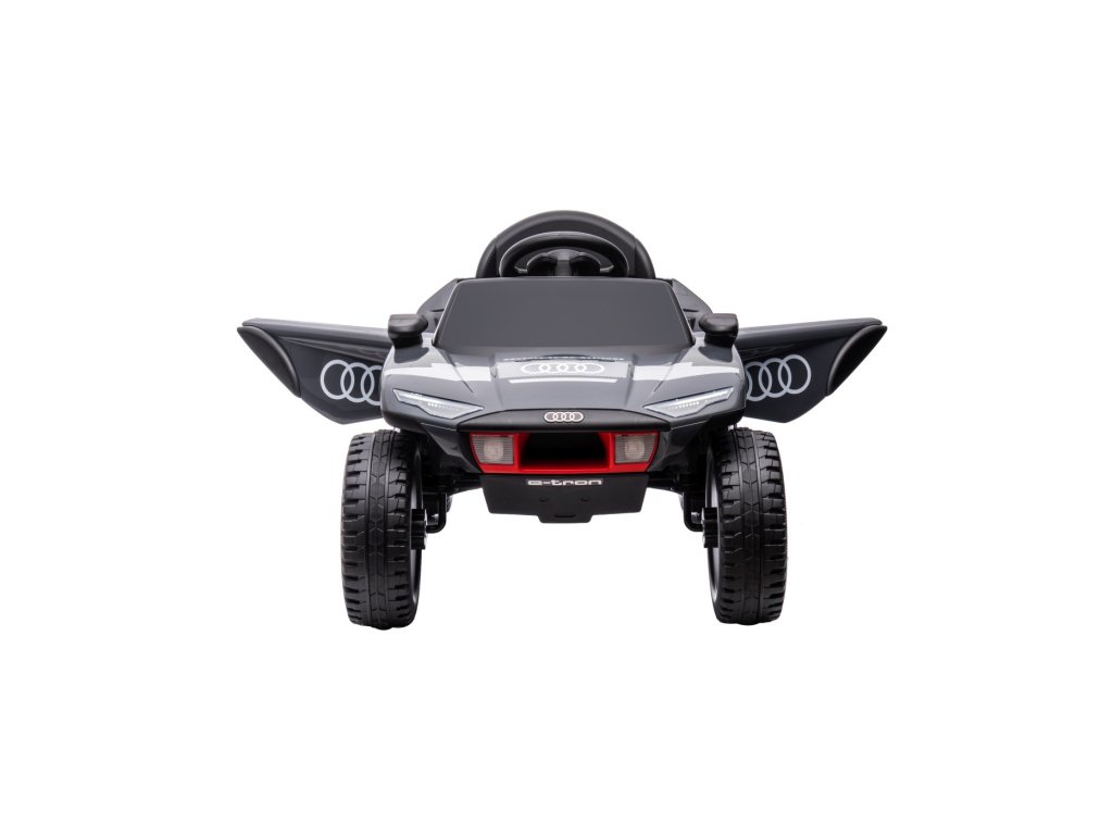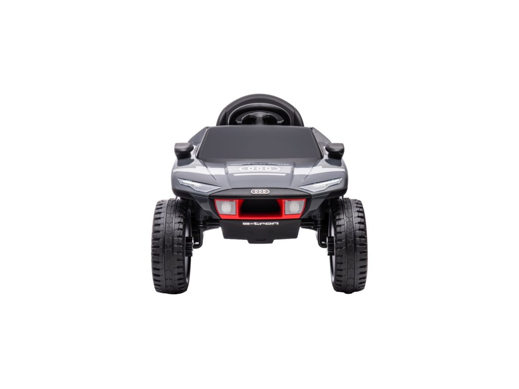 Детска лицензирана акумулаторна кола Audi RSQ E-TRON сива с богато оборудване и иновативен дизайн. Интериорът на колата е оборудван със седалка с безопасни колани, музикална панел с Bluetooth, радио, входове за MP3, USB, AUX, SD и бутони с мелодии. За по-безопасно каране колата има предни и задни LED светлини.