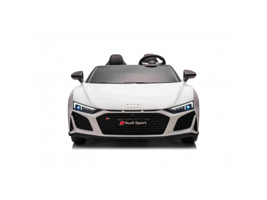Лицензиран акумулаторен автомобил Ауди Spyder R8 LIFT 400W 24V бяла с два мощни мотора с обща мощност 400W е незаменима част от всяко детско гаражно пространство. Количката се захранва от акумулатор с капацитет 24V 14Ah. Максималното натоварване на автомобила е 100 кг. По време на каране детето ще бъде заинтригувано от музикалния панел с поддръжка на MP3, Bluetooth, AUX и USB.