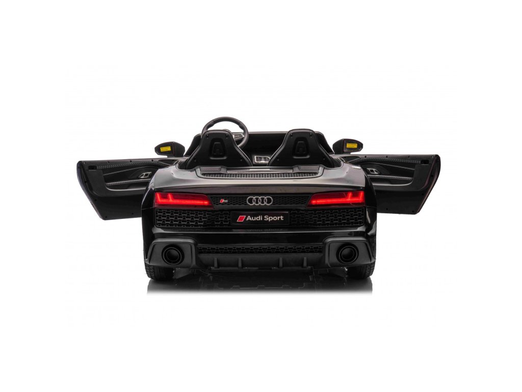 Лицензирана акумулаторна кола Ауди Spyder R8 LIFT 400W 24V черна с два мощни мотора с обща мощност 400W е незаменим модел във всяко детско игрално пространство. Колата се задвижва от акумулатор с капацитет 24V 14Ah. Максималната товароносимост на автомобила е 100 кг. По време на каране детето ще бъде заинтригувано от музикалния панел с MP3, Bluetooth, AUX и USB.