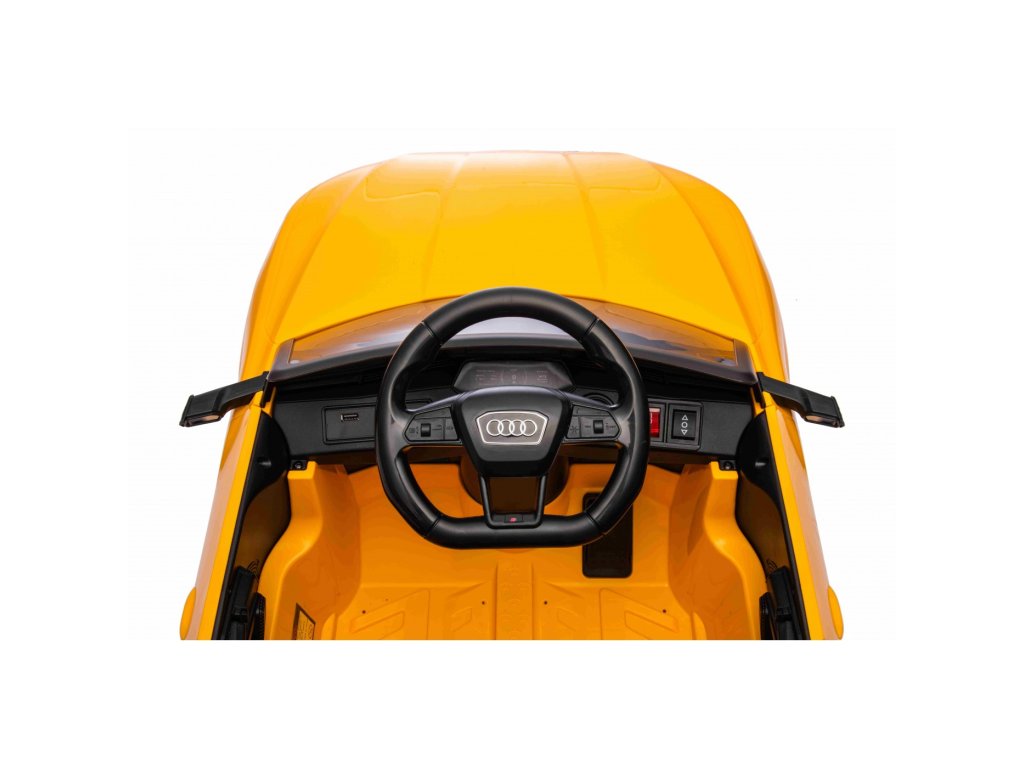 Детска електрическа Акумулаторна кола Audi SQ8 жълта с два мотора с обща мощност 70W е задължителна за всяко детско "гаражно" пространство. Колата се захранва от батерия с капацитет 12V 9Ah. Максималната товароносимост на автомобила е 30 кг. По време на каране детето ще бъде впечатлено от музикалния панел с MP3, Bluetooth и USB.