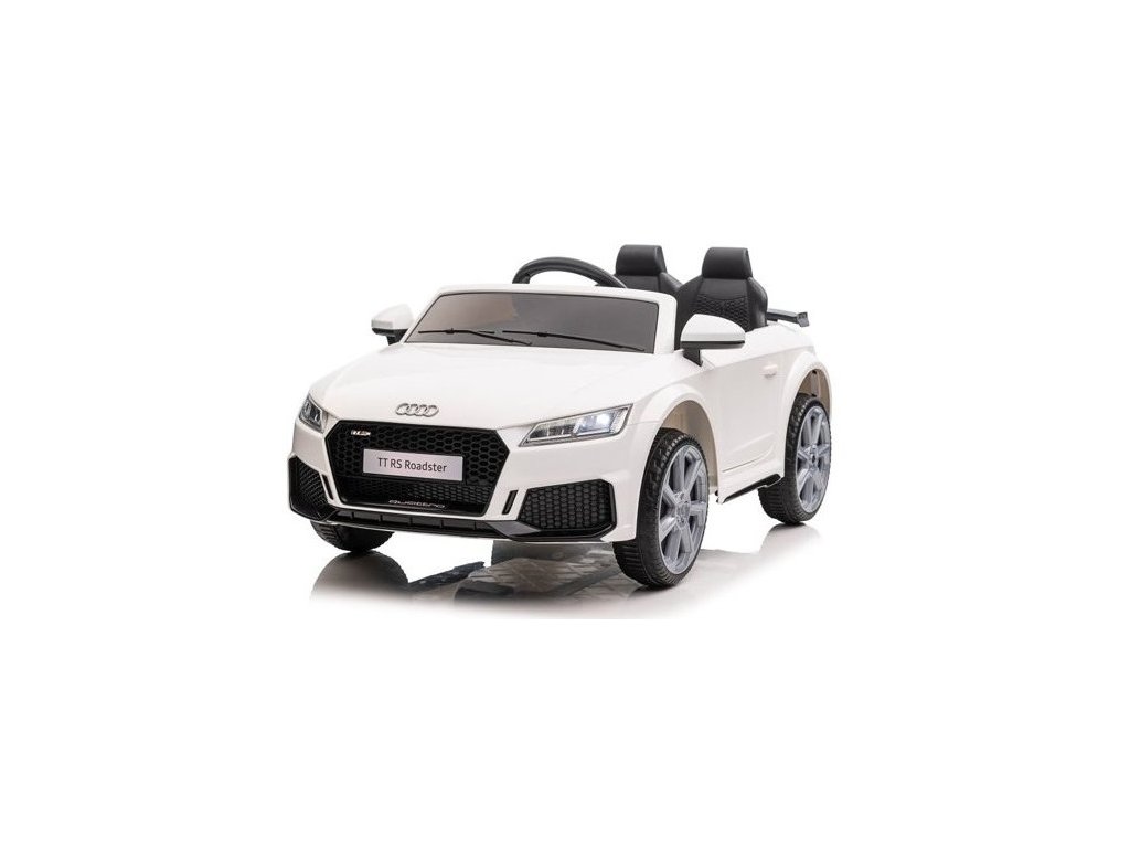Акумулаторна кола Audi TT RS Roadster бяло разполага с два мотора с мощност 45W всеки. Колата е оборудвана с акумулатор 12V 7Ah и има максимално натоварване 30 кг. Седалката е тапицирана с екологична кожа и разполага с предпазен колан. Предимство на колата са функционалните LED светлини отпред и отзад.