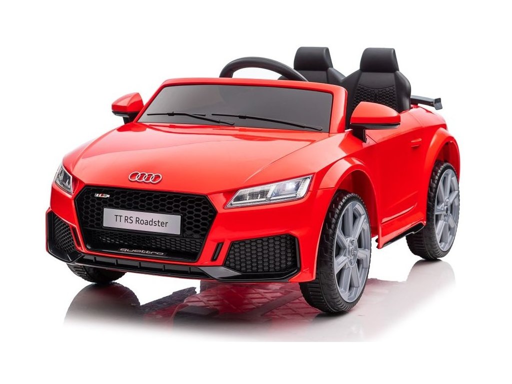 Акумулаторна кола Audi TT RS Roadster червена е оборудвана с два мотора с мощност 45W всеки. Колата разполага с батерия с капацитет 12V 7Ah и максимално допустимо тегло 30 кг. Седалката е покрита с еко кожа и е снабдена с предпазен колан. Предимство на колата са работещите LED фарове отпред и отзад.