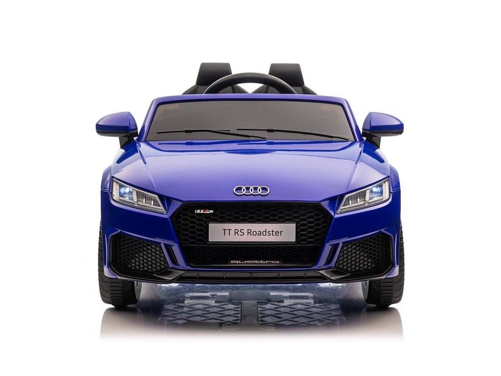 Акумулаторна кола Audi TT RS Roadster синя разполага с два мотора с мощност 45W всеки. Колата е оборудвана с акумулаторна батерия с капацитет 12V 7Ah и има товароносимост 30 кг. Седалката е облечена в еко кожа и е снабдена с предпазен колан. Предимство на колата са работещите LED светлини отпред и отзад.