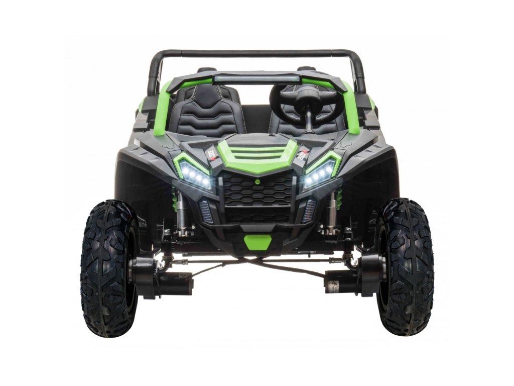 Акумулаторна кола Бъги ATV RACING UTV2000 четириместен зелен с четири мощни мотора с обща мощност от 600W, която не бива да липсва в нито един детски гараж. Кола е захранвана от батерия с капацитет 24V 15.6Ah (Li-ion). Максималното допустимо натоварване на превозното средство е 120 кг. По време на каране детето ще се забавлява с музикалния панел с MP3, Bluetooth, USB и предварително записани мелодии.
