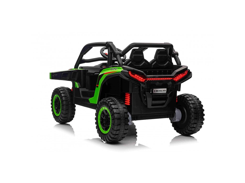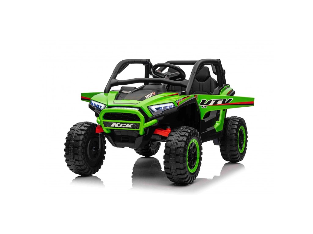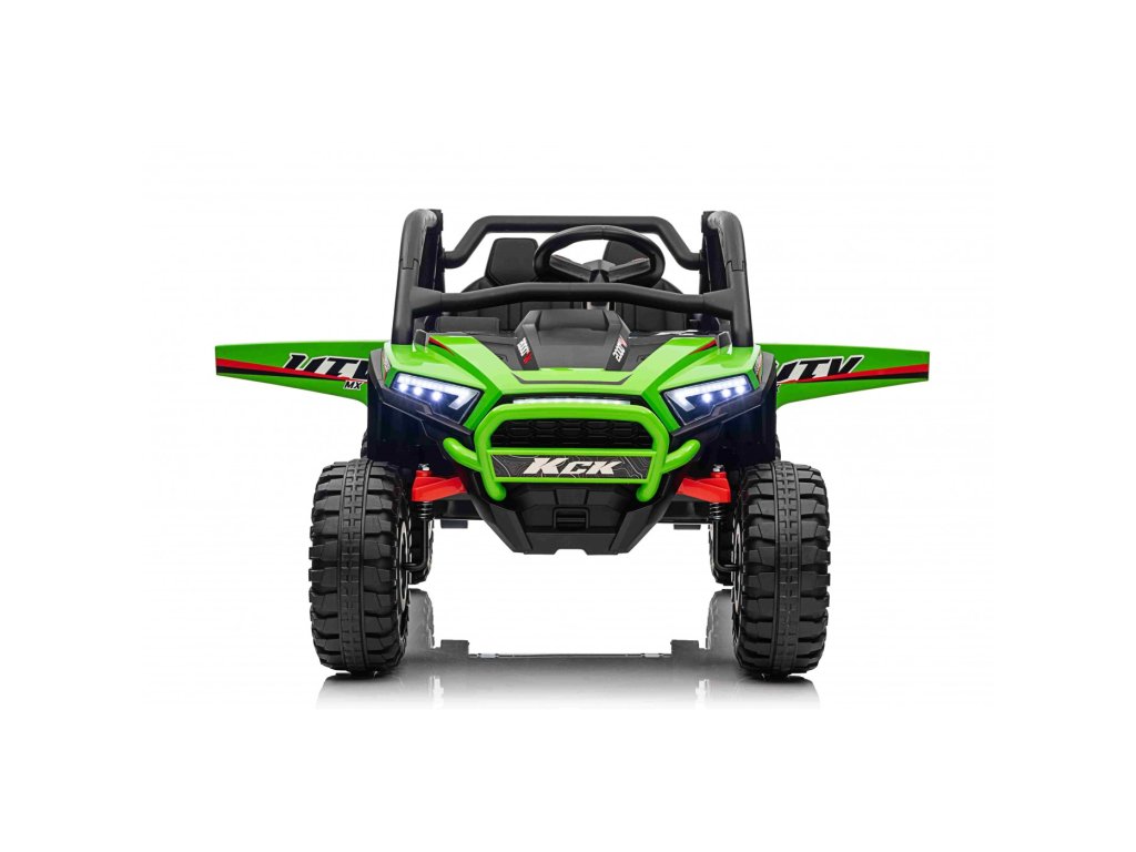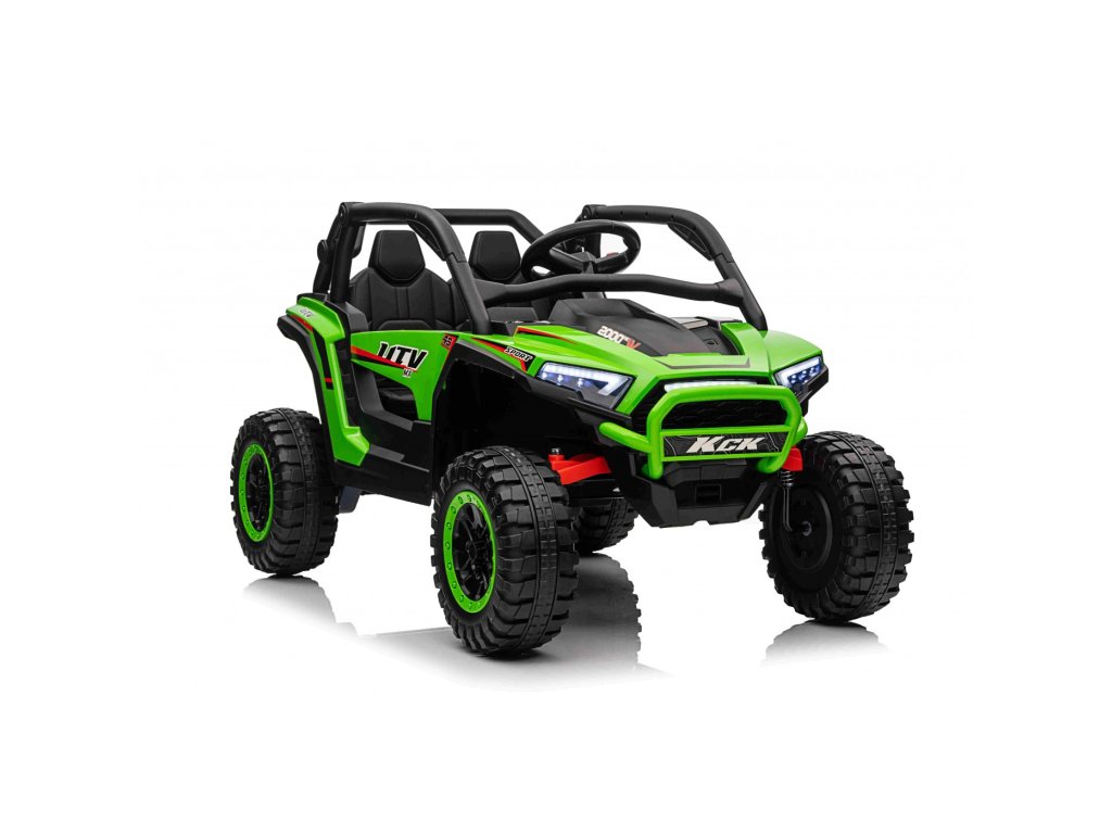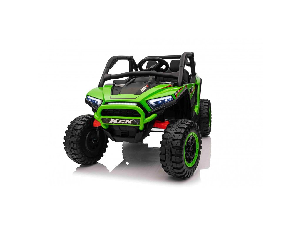 Акумулаторна кола бъги KCK 4x4 24V зелена разполага с четири мощни електрически мотора с обща мощност 200W и гуми от пяна EVA.