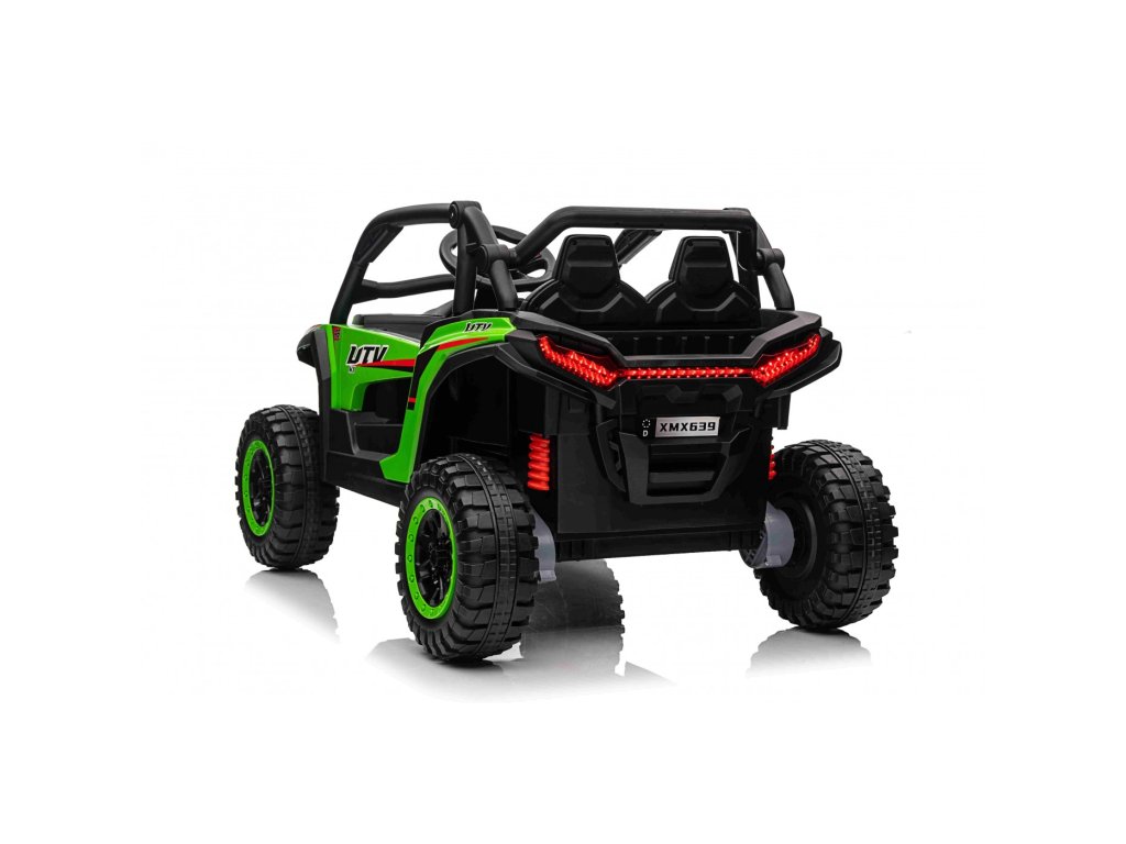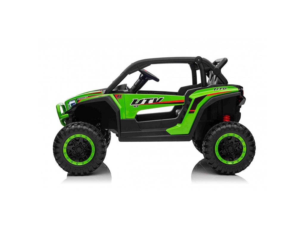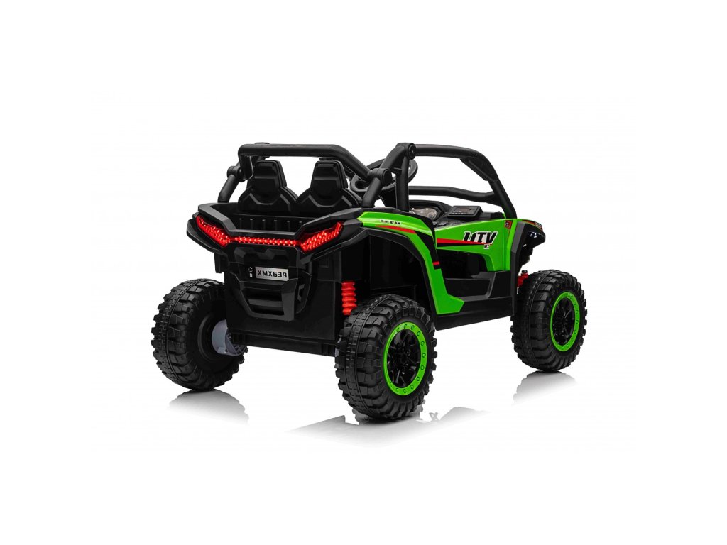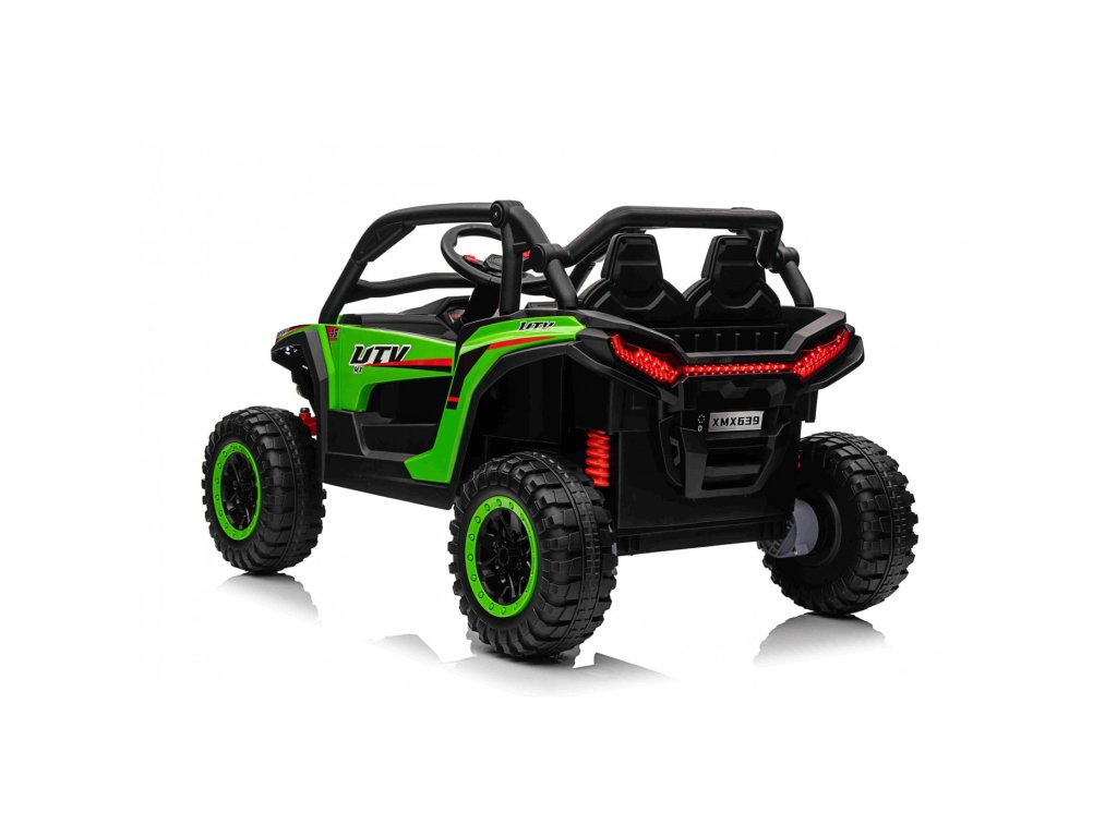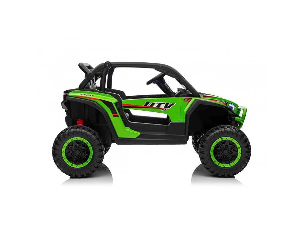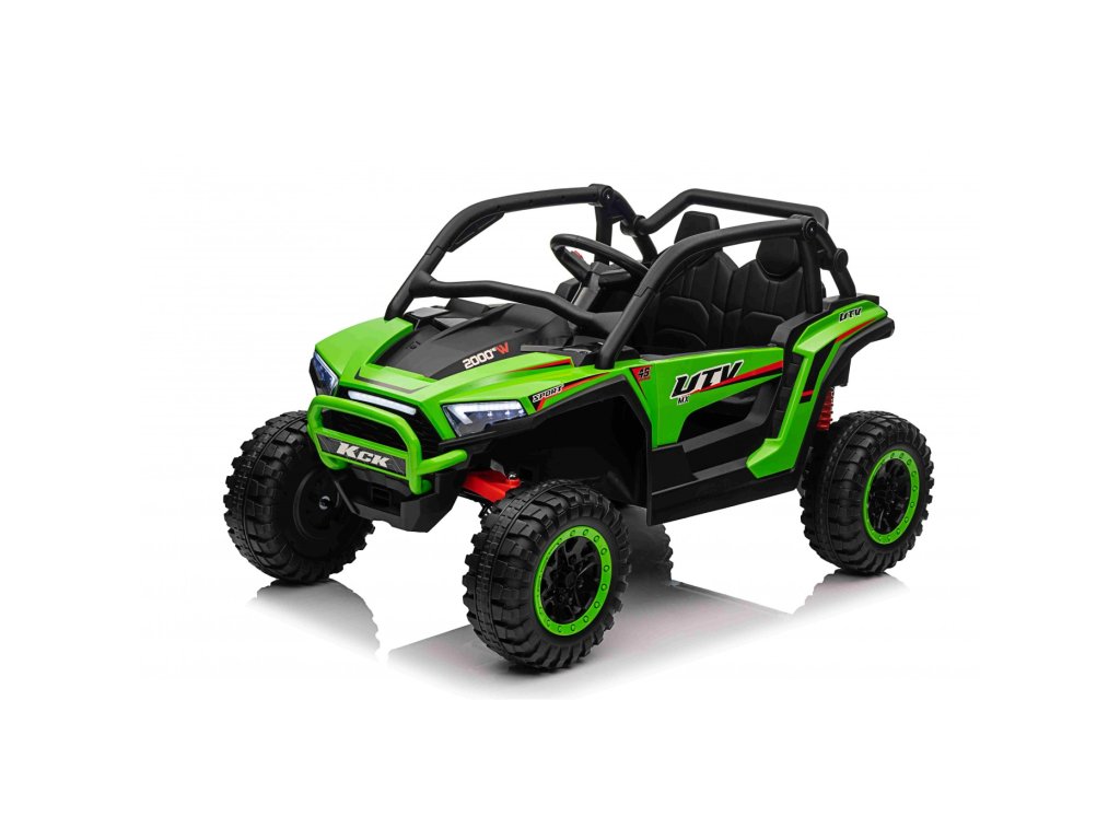 Акумулаторна кола бъги KCK 4x4 24V зелена разполага с четири мощни електрически мотора с обща мощност 200W и гуми от пяна EVA.