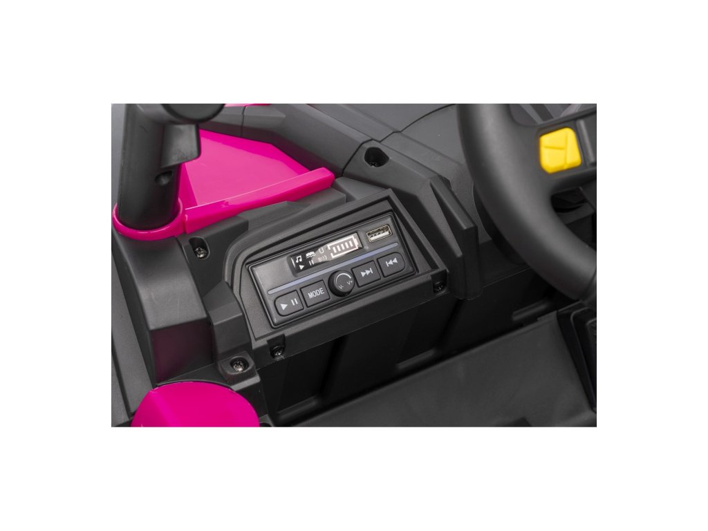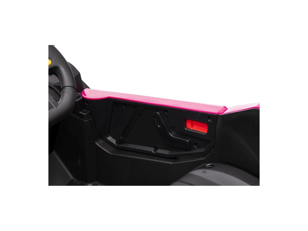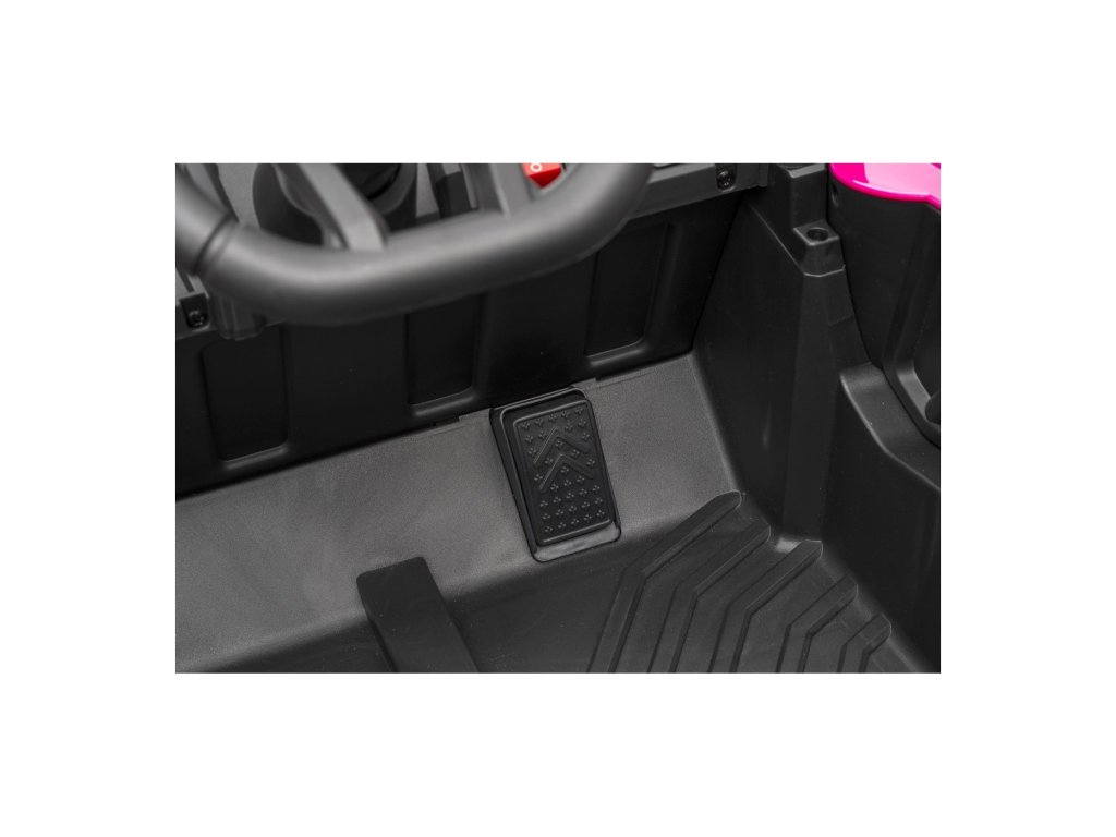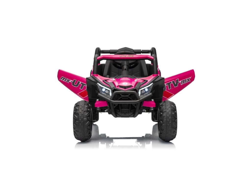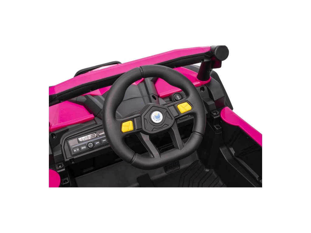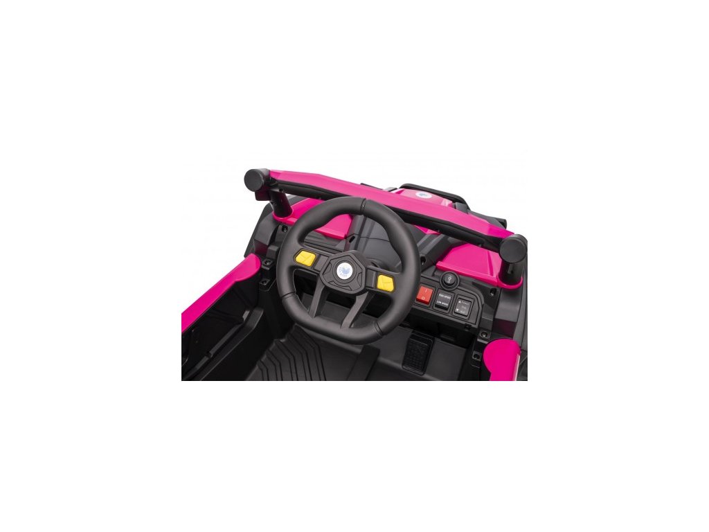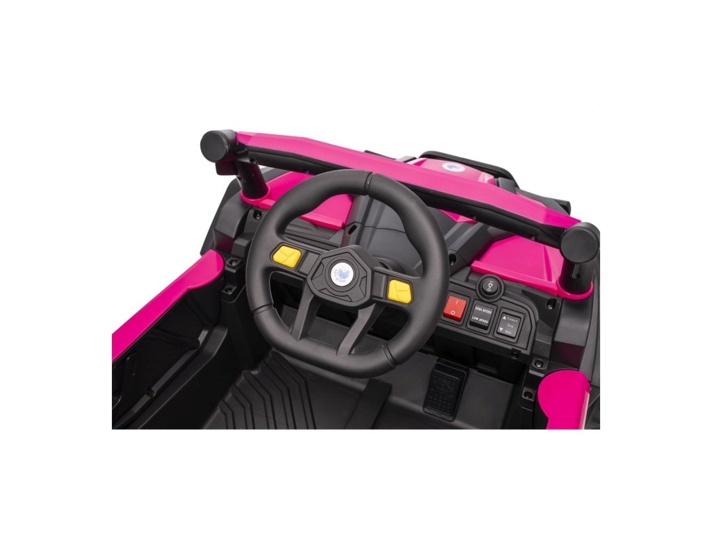 При изработката на Акумулаторна кола Бъги Madman UTV-MX розово е обърнато внимание на всеки детайл, като обезопасителни колани, кожена седалка, музикален панел и светлинни ефекти.
