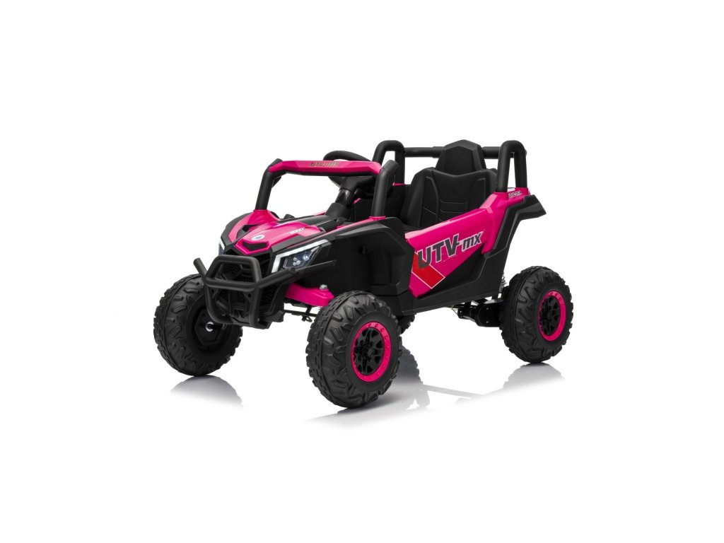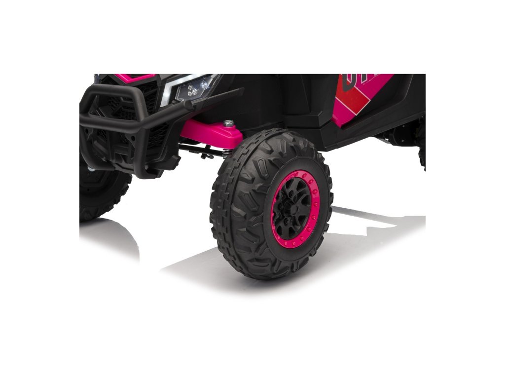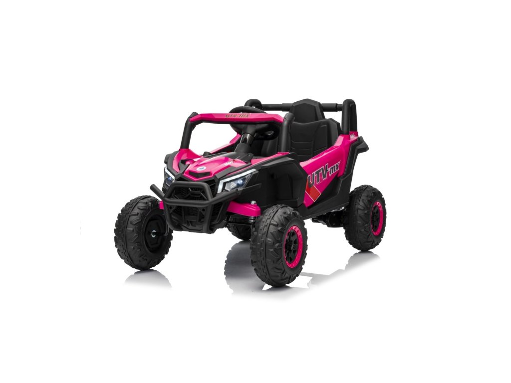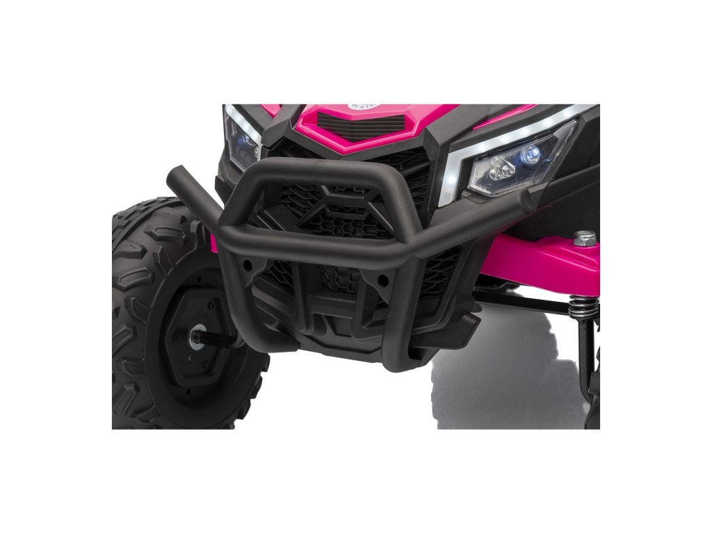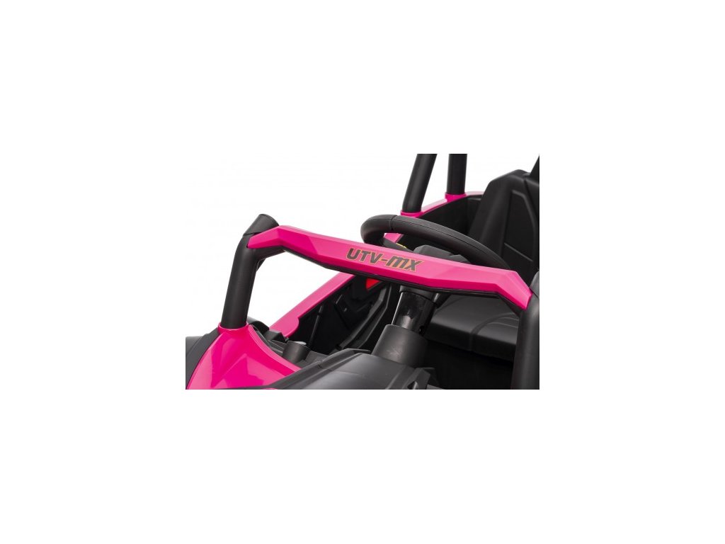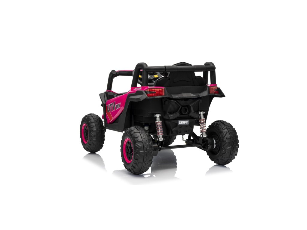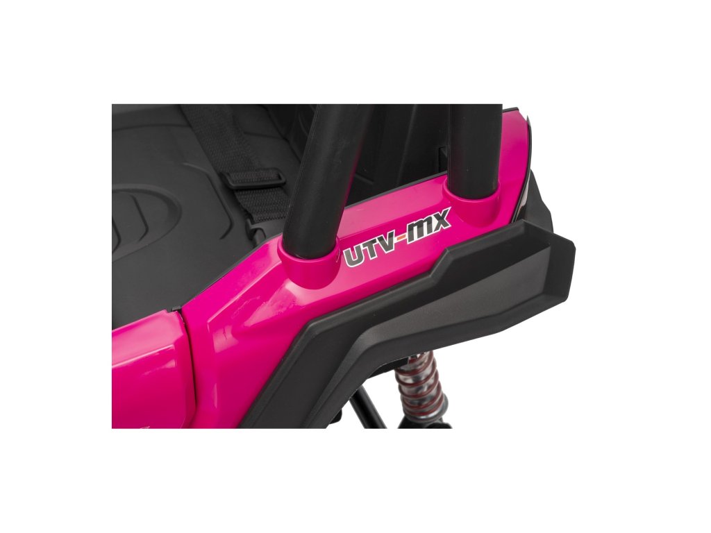 При изработката на Акумулаторна кола Бъги Madman UTV-MX розово е обърнато внимание на всеки детайл, като обезопасителни колани, кожена седалка, музикален панел и светлинни ефекти.