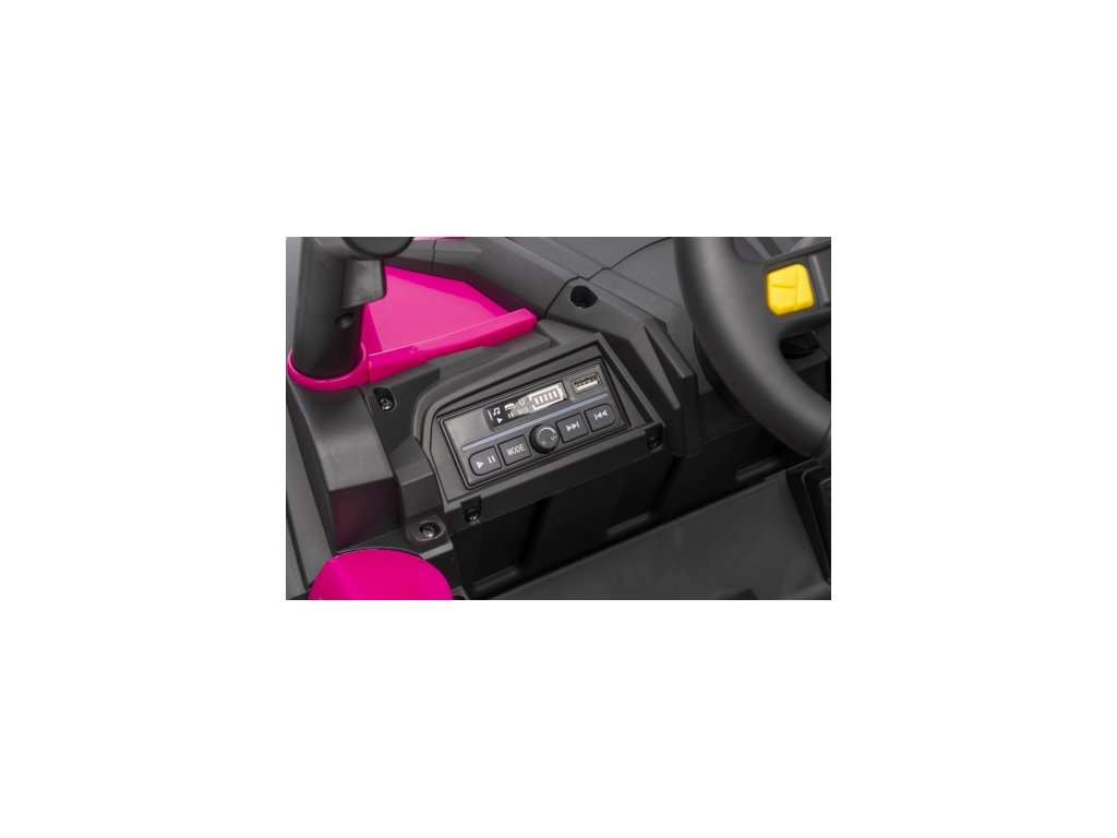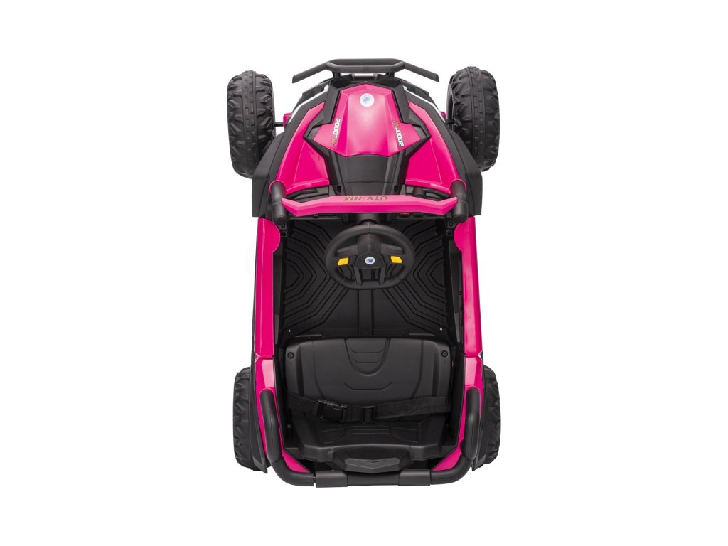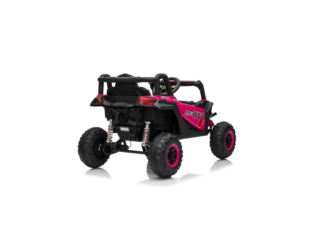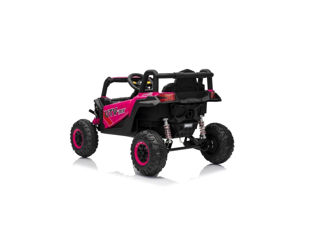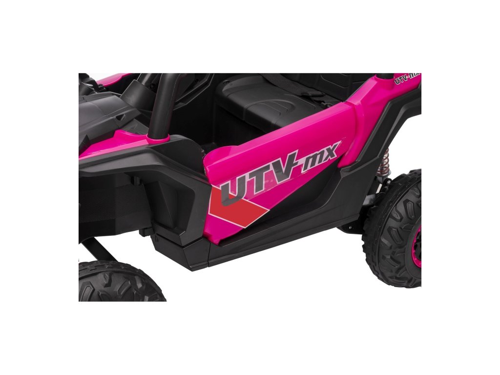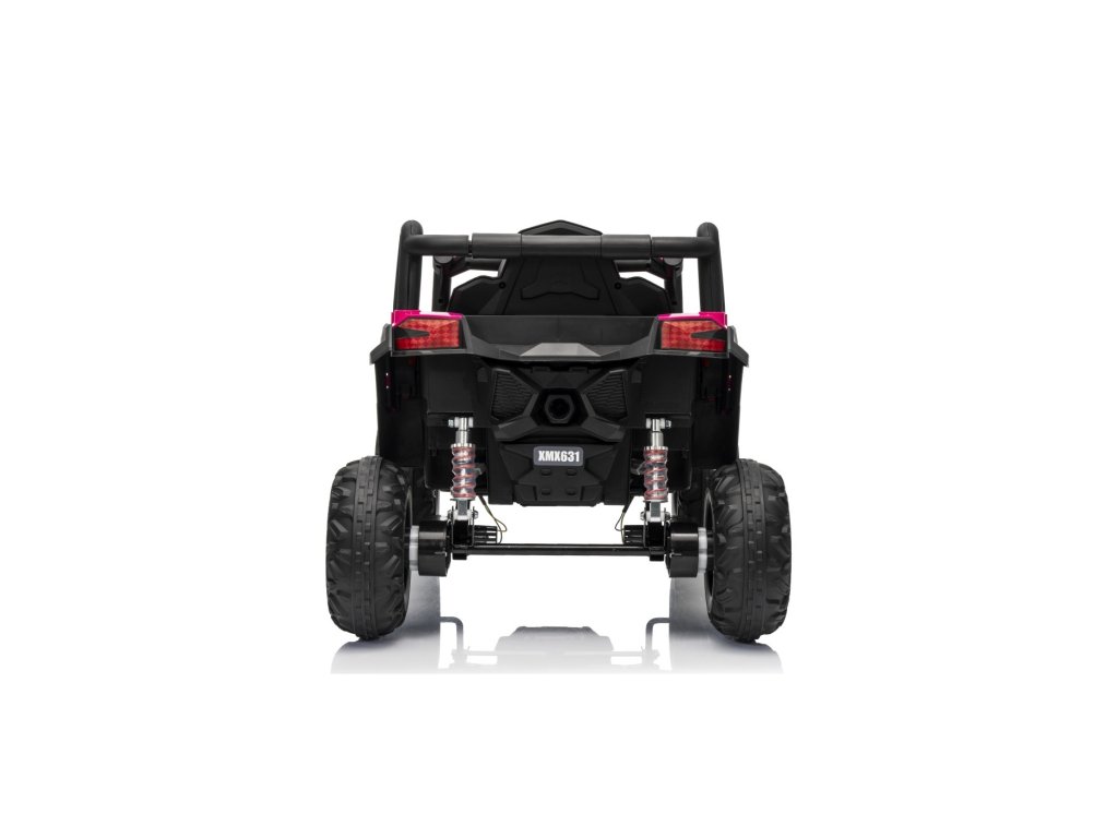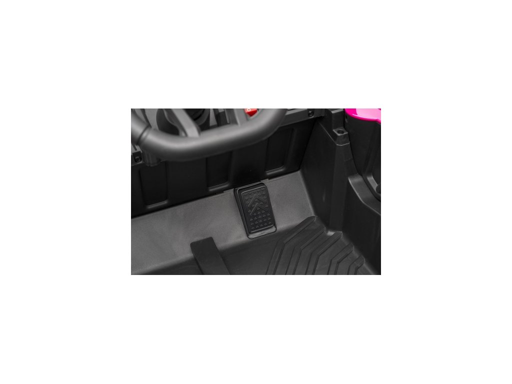 При изработката на Акумулаторна кола Бъги Madman UTV-MX розово е обърнато внимание на всеки детайл, като обезопасителни колани, кожена седалка, музикален панел и светлинни ефекти.