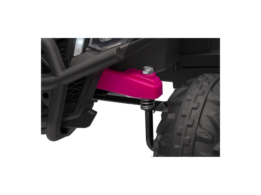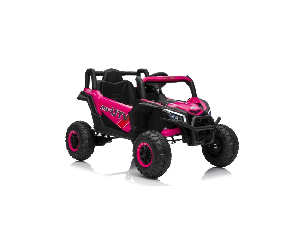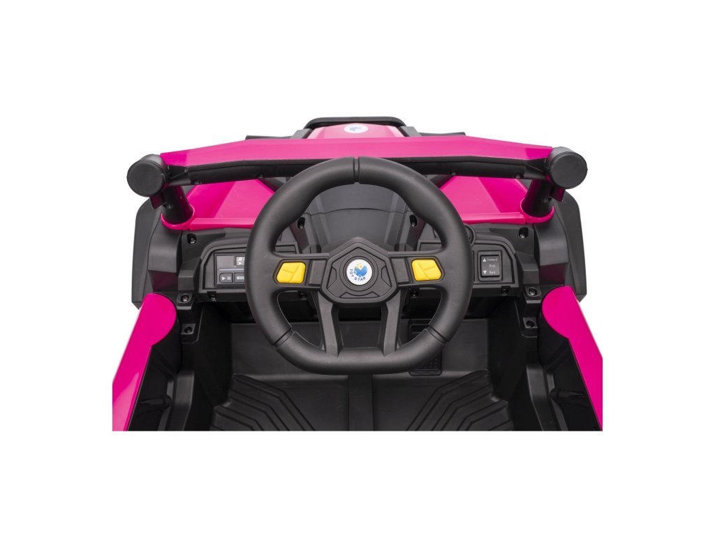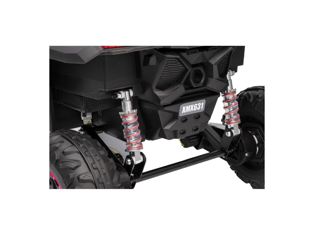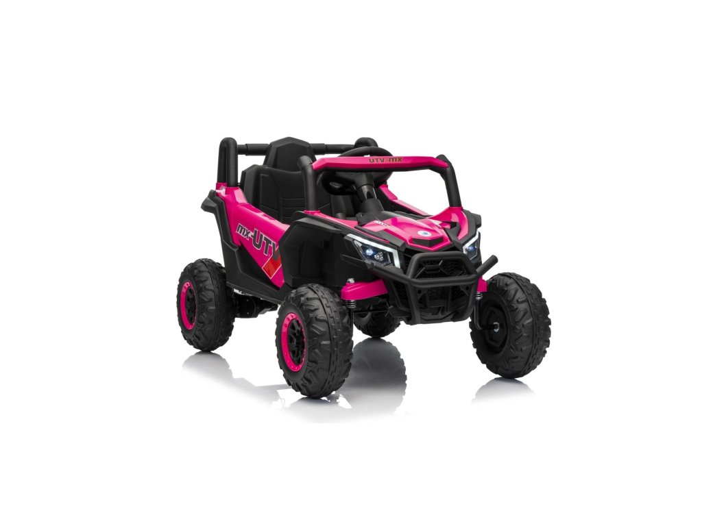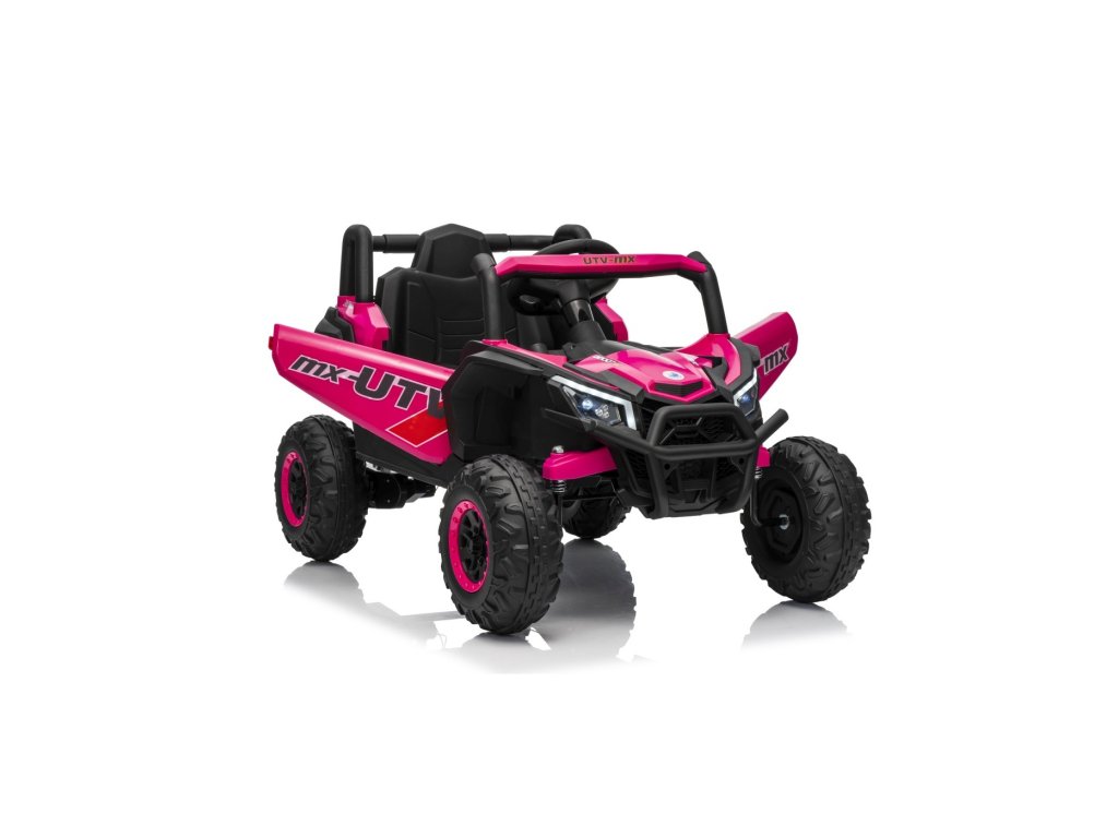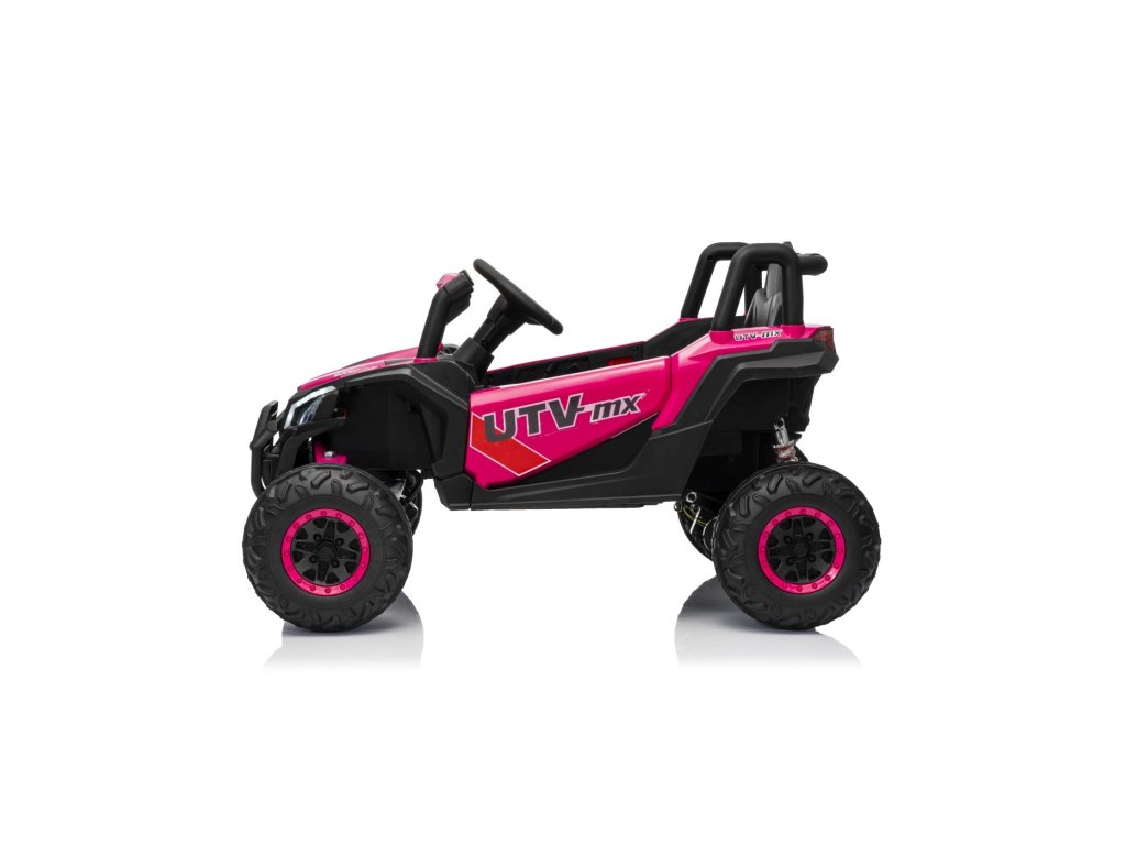 При изработката на Акумулаторна кола Бъги Madman UTV-MX розово е обърнато внимание на всеки детайл, като обезопасителни колани, кожена седалка, музикален панел и светлинни ефекти.