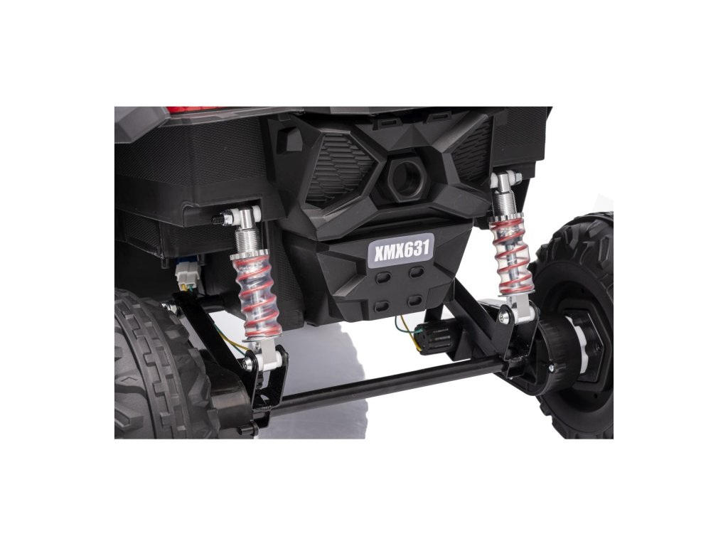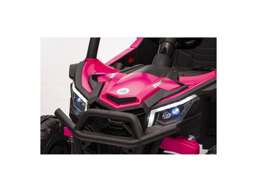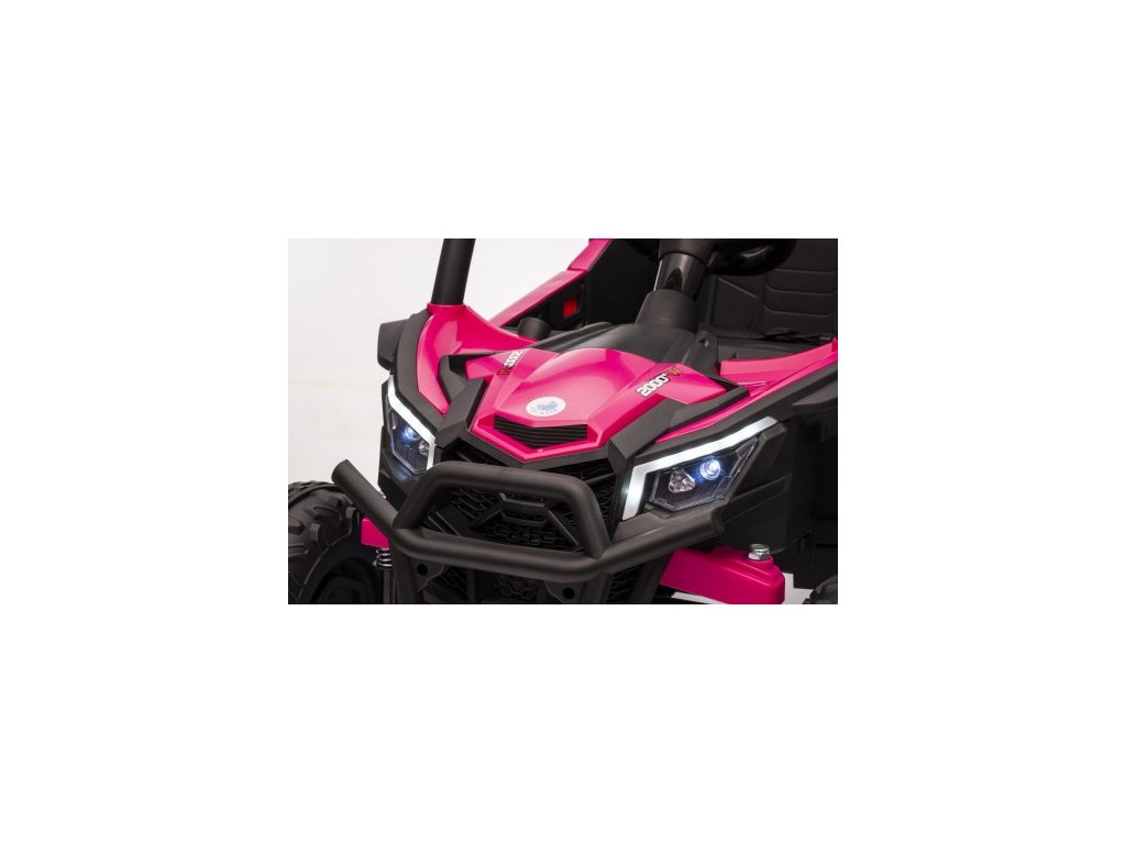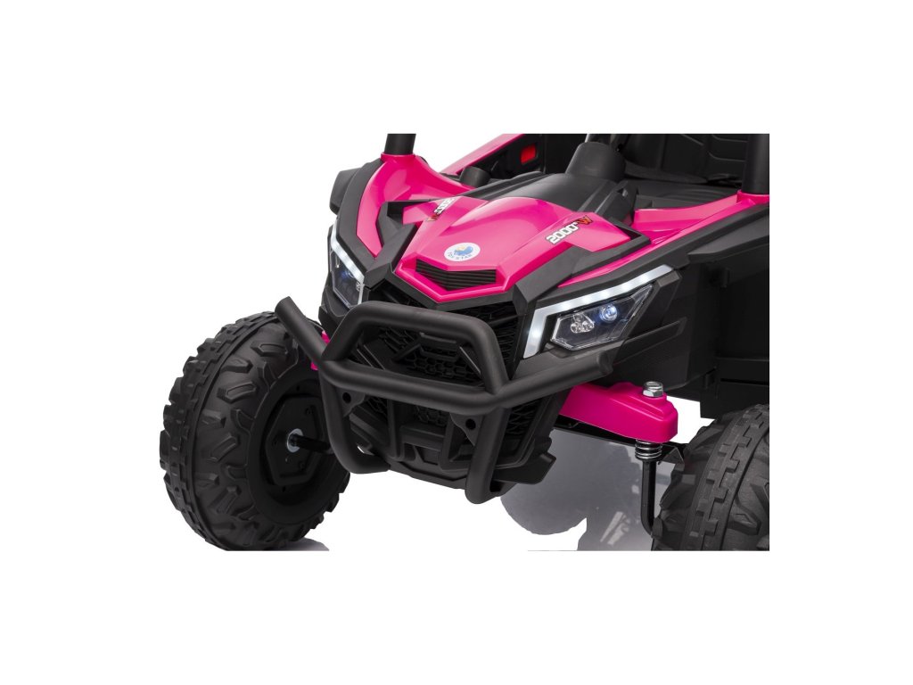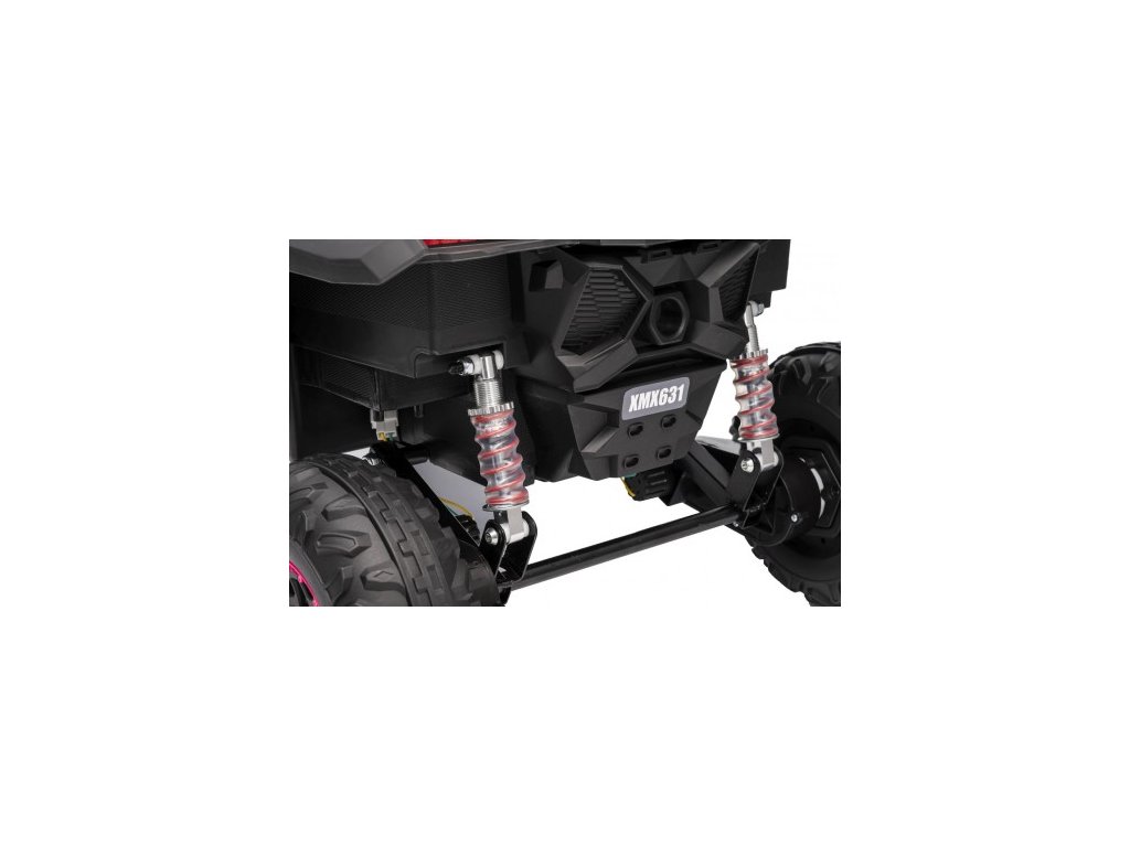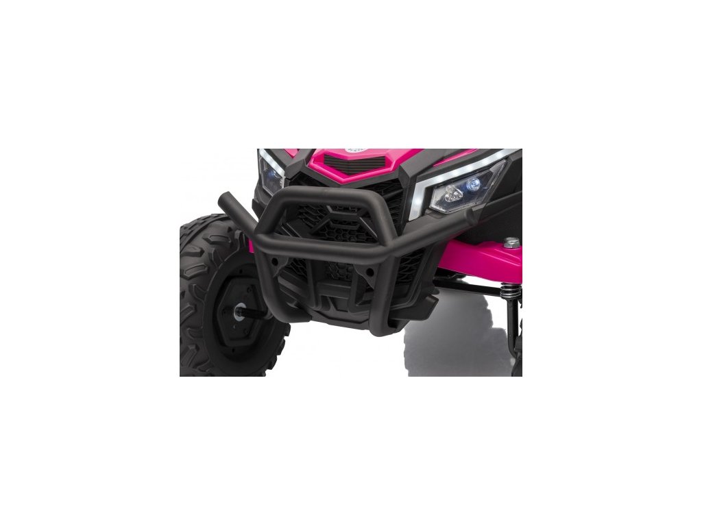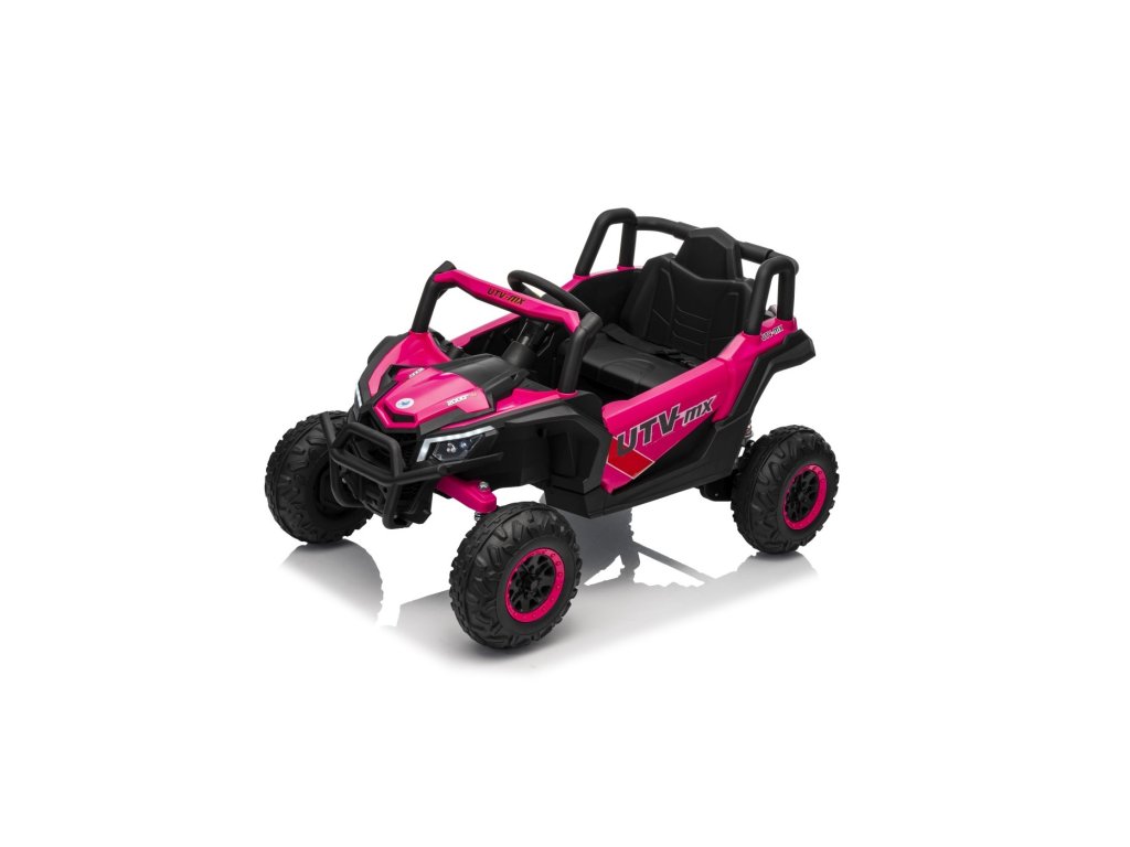 При изработката на Акумулаторна кола Бъги Madman UTV-MX розово е обърнато внимание на всеки детайл, като обезопасителни колани, кожена седалка, музикален панел и светлинни ефекти.