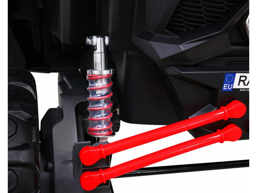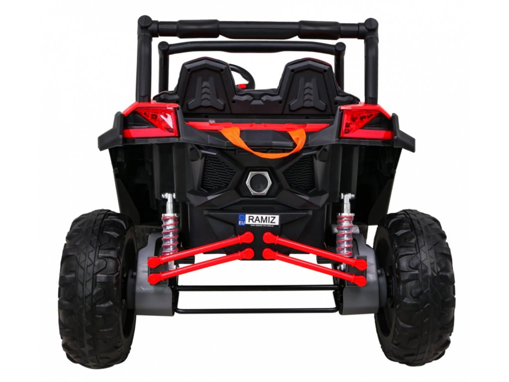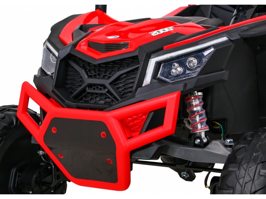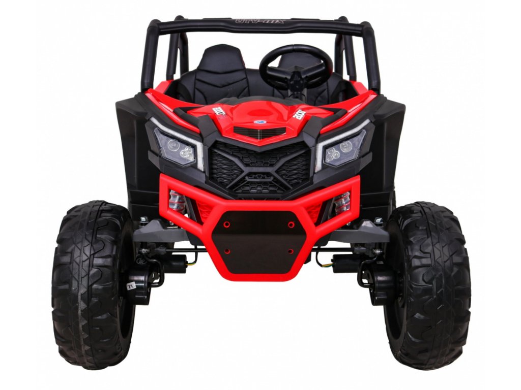 Акумулаторна кола Бъги UTV-MX 24V 4x4 червено е оборудвана с четири мощни електрически мотора по 60W и батерия 24V 7Ah. Комфорта при каране гарантират големите пяни EVA гуми, които заедно с моторите преодоляват неравен терен и неасфалтирани повърхности.