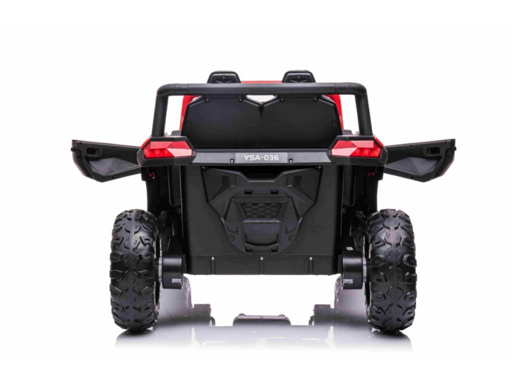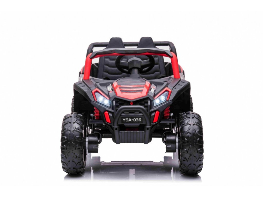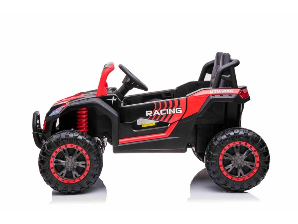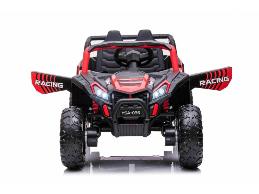 Детска акумулаторна кола Бъги UTV Racing 4x4 е оборудвана с тиха пяна EVA гуми, които осигуряват комфорт и стабилност дори на неравен терен. Превозното средство е задвижвано от четири електрически мотора с мощност 45W всеки. Детето се настанява в удобно оформено седалка със безопасни колани. Можете да се движите по терена с регулираща се скорост между 3 и 8 км/ч, като са налични 3 различни скорости.