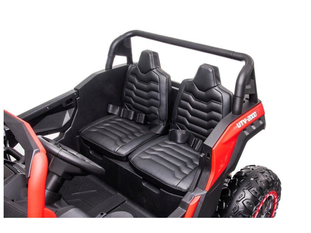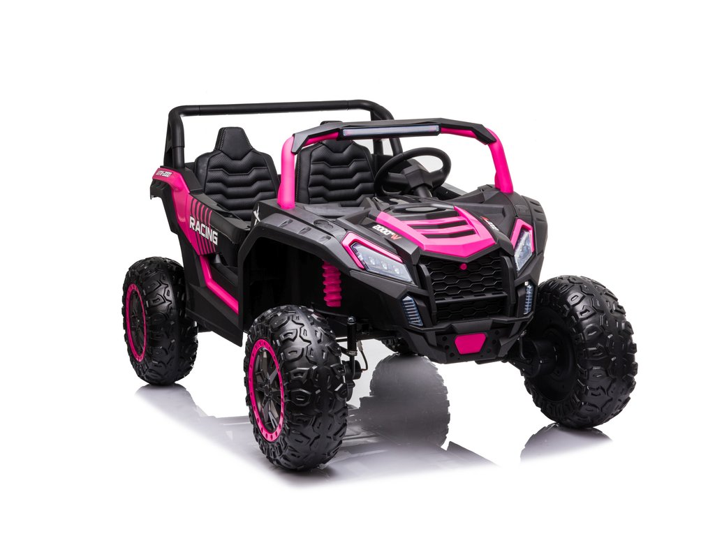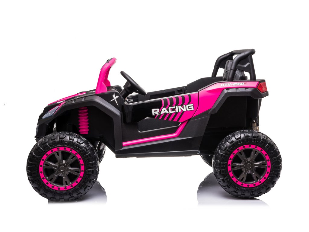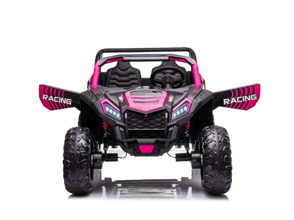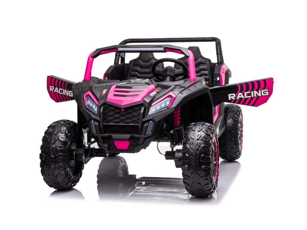 Уникална детска акумулаторна кола Бъги УТВ Стронг 24V розово с ултра мощни електрически мотори 2x200W и батерия 24V 7Ah, които се справят не само с твърди и равни настилки. Големите масивни колела са изработени от здравата EVA пяна, която гарантира комфортно, тихо и безпроблемно каране.