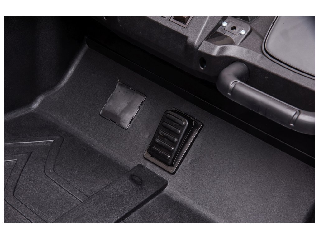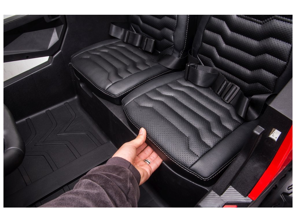 За безопасността отговаря функцията за автоматично спиране, която се активира веднага след отпускане на педала за газ. Седалката е оборудвана със съобразителни обезопасителни колани, а дистанционното управление разполага с бутон Stop за безопасност, който незабавно спира превозното средство и изключва всички функции. Детето може да управлява колата самостоятелно, като родителите винаги имат възможност да контролират движението чрез дистанционното управление.