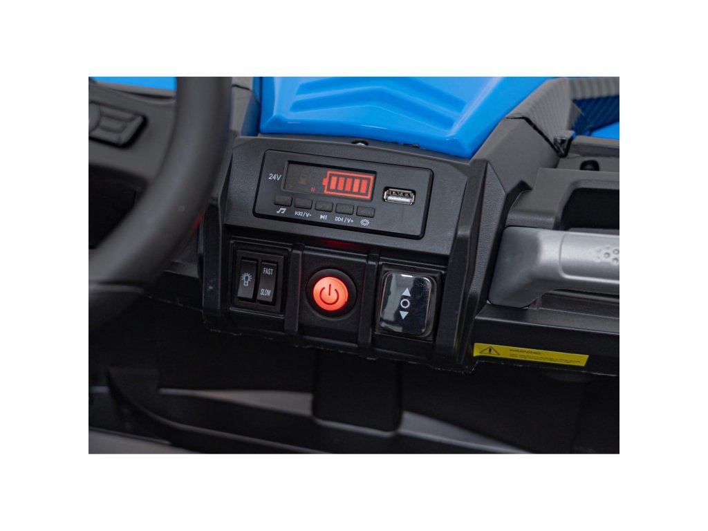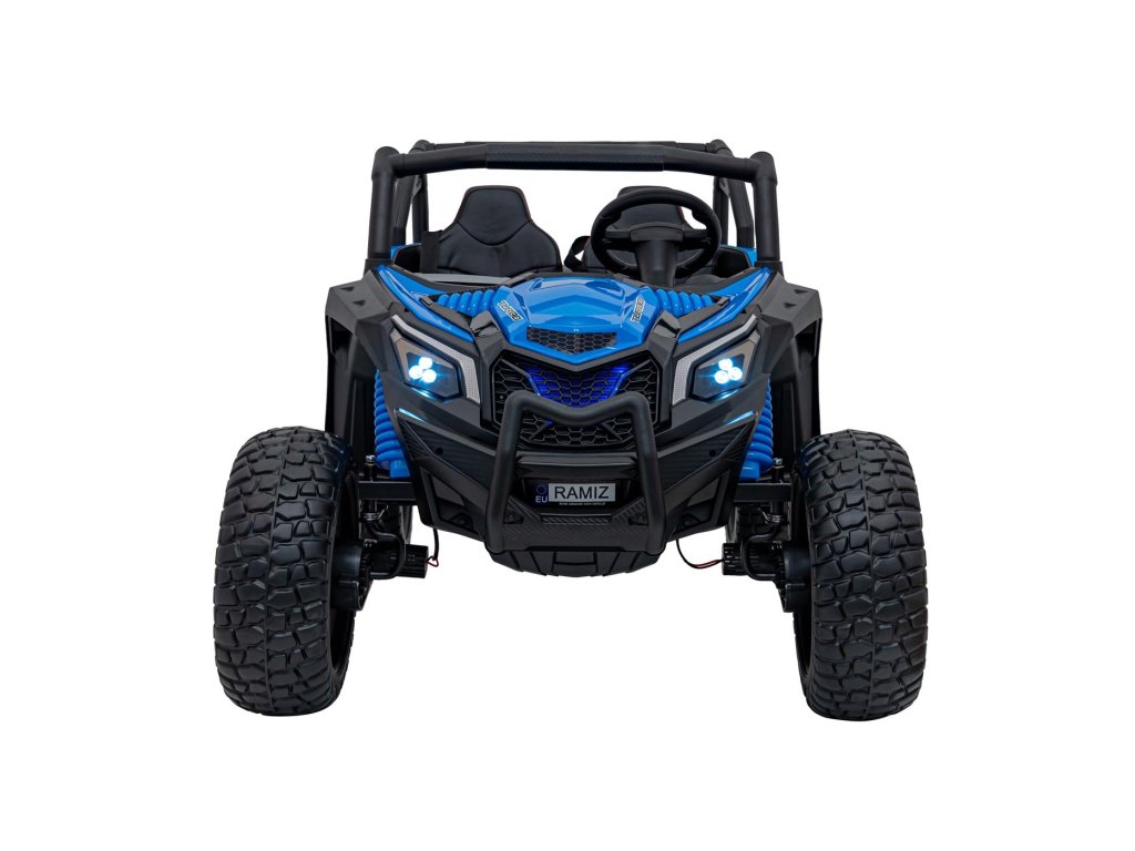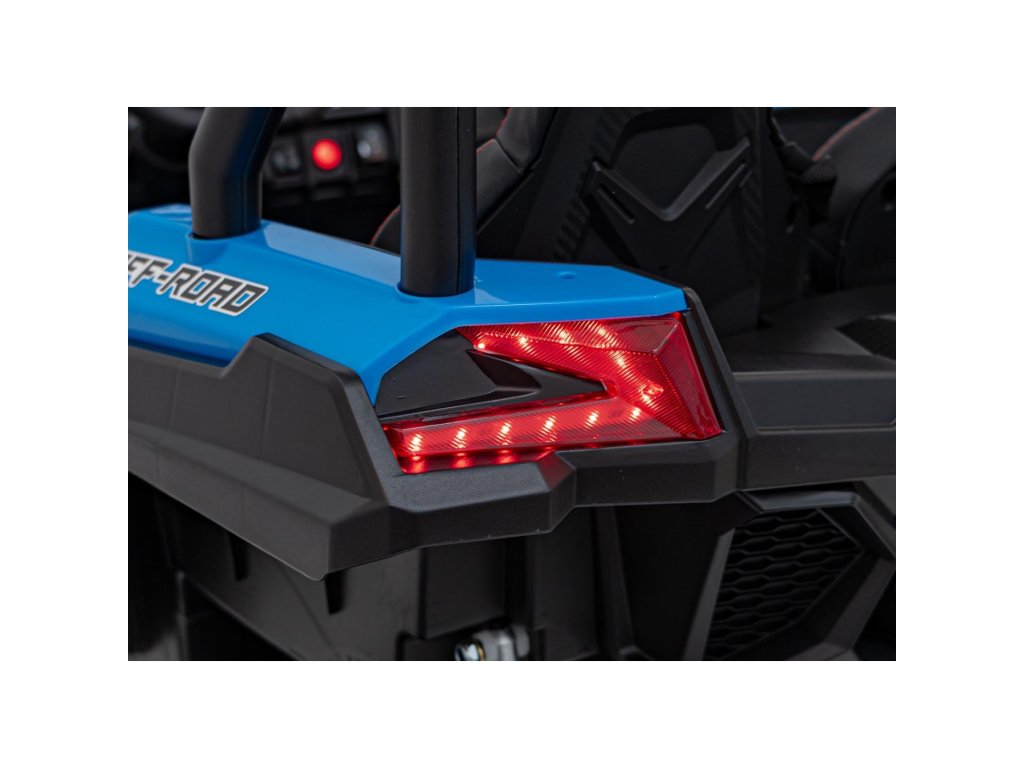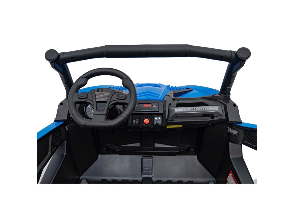 Акумулаторната кола бъги UTV X3 Оф-роуд 4x4 24V синьо със силни двигатели с обща мощност от 800W е незаменима в гаража на всяко дете. Колата работи с акумулатор с капацитет 24V 9Ah. Максималното натоварване на превозното средство е 60 кг. По време на каране детето ще се забавлява с музикалния панел, който разполага с MP3, Bluetooth и USB.