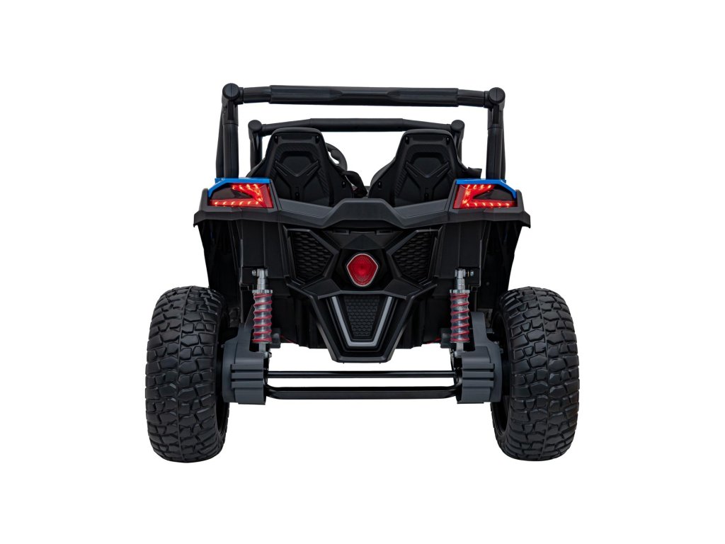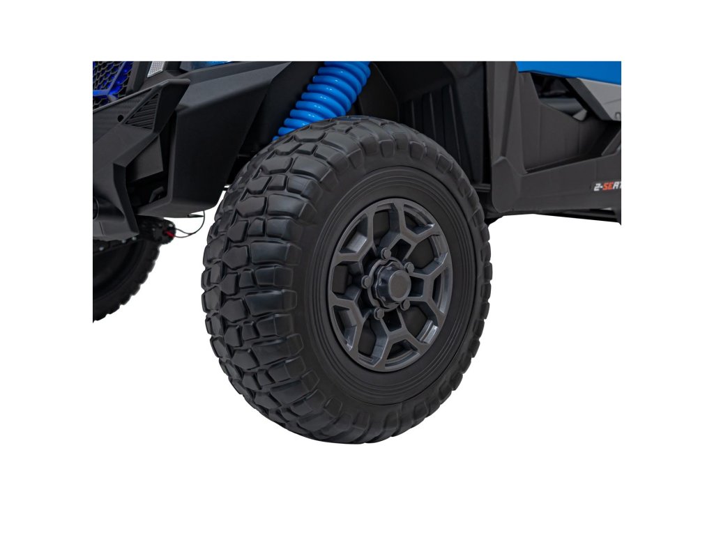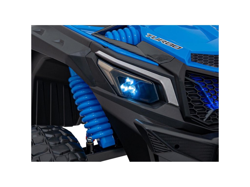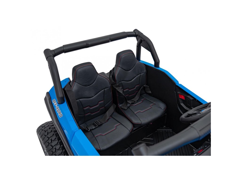 Акумулаторната кола бъги UTV X3 Оф-роуд 4x4 24V синьо със силни двигатели с обща мощност от 800W е незаменима в гаража на всяко дете. Колата работи с акумулатор с капацитет 24V 9Ah. Максималното натоварване на превозното средство е 60 кг. По време на каране детето ще се забавлява с музикалния панел, който разполага с MP3, Bluetooth и USB.