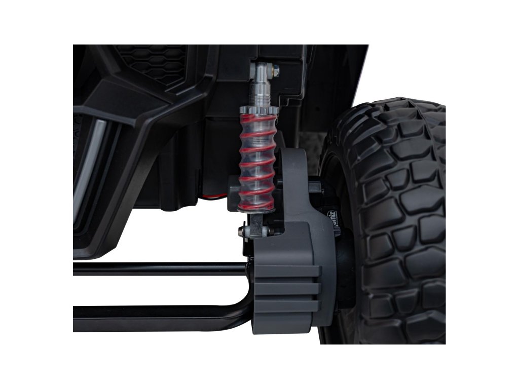 Управлението на колата може да се осъществява и чрез дистанционно управление на честота 2,4 GHz. Дистанционното разполага с три скорости и бутон за спиране STOP, който аварийно спира колата моментално при натискане. Седалката е обшита с еко кожа и е оборудвана със безопасностни колани.