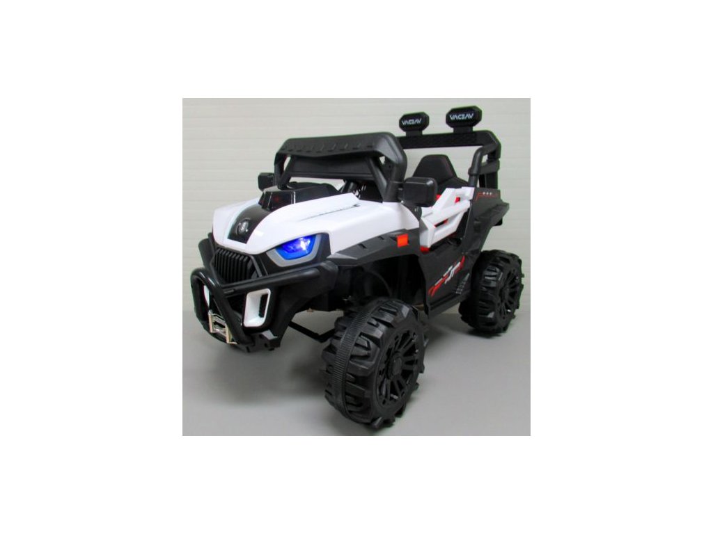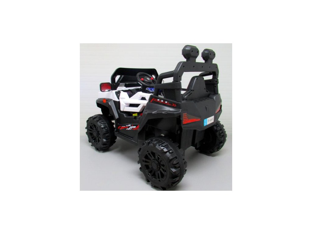 Детска акумулаторна кола Бъги X8n бял с богато оборудване и иновативен дизайн. Интериорът на колата разполага със седалка с предпазни колани, музикален панел с входове за MP3, USB и бутони с мелодии. За по-добра видимост по пътя са предвидени предни фарове.