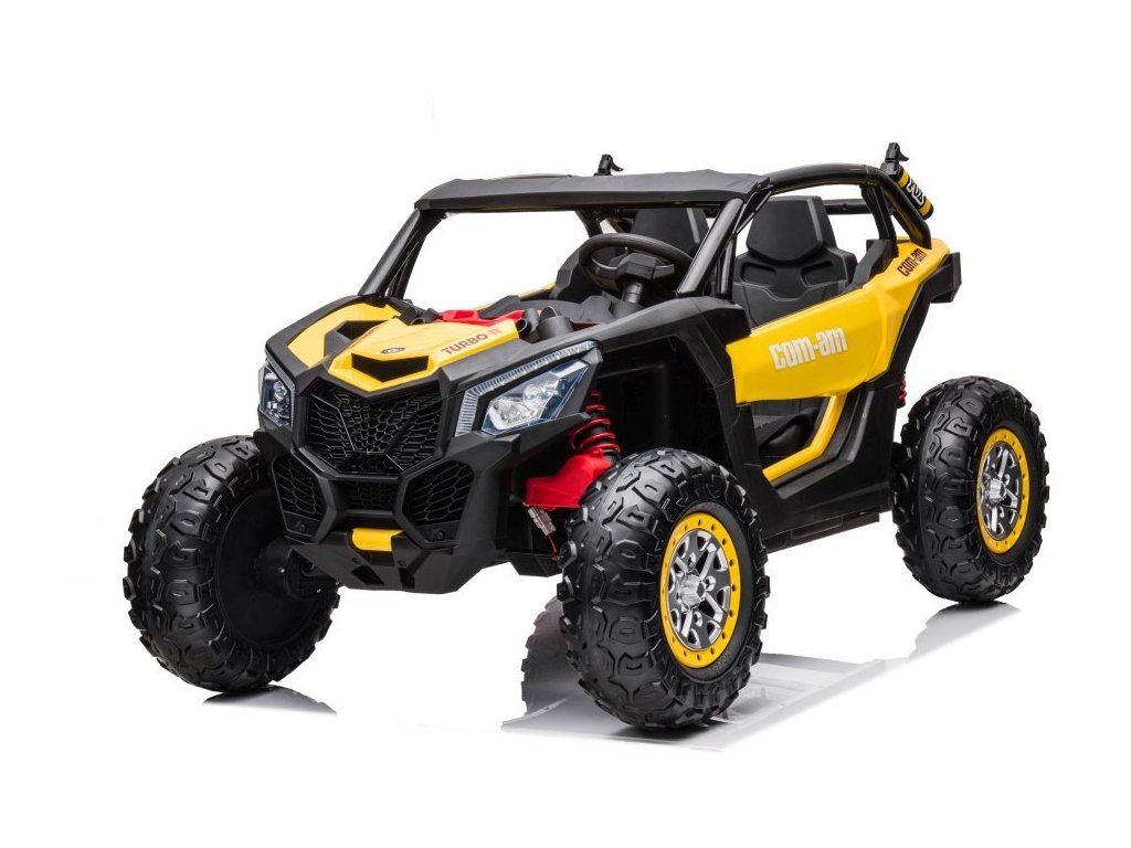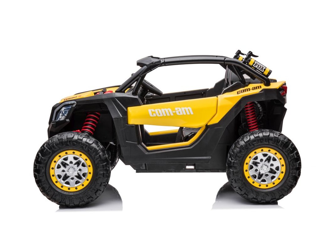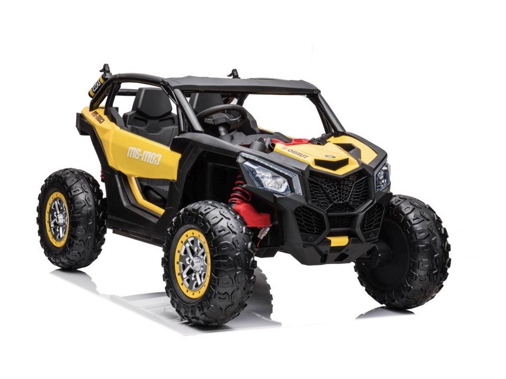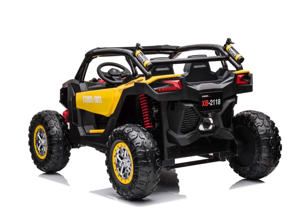Акумулаторна кола Бъги XB 4x4 златно идва с големи пянисти EVA гуми, които се справят с различни видове терени. Интериорът е оборудван с музикален панел с Bluetooth, USB и MP3 вход.